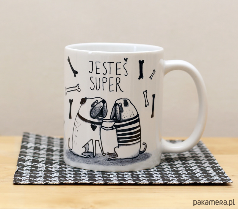 Kubek z zakochanymi Mopsami "Jesteś super"
