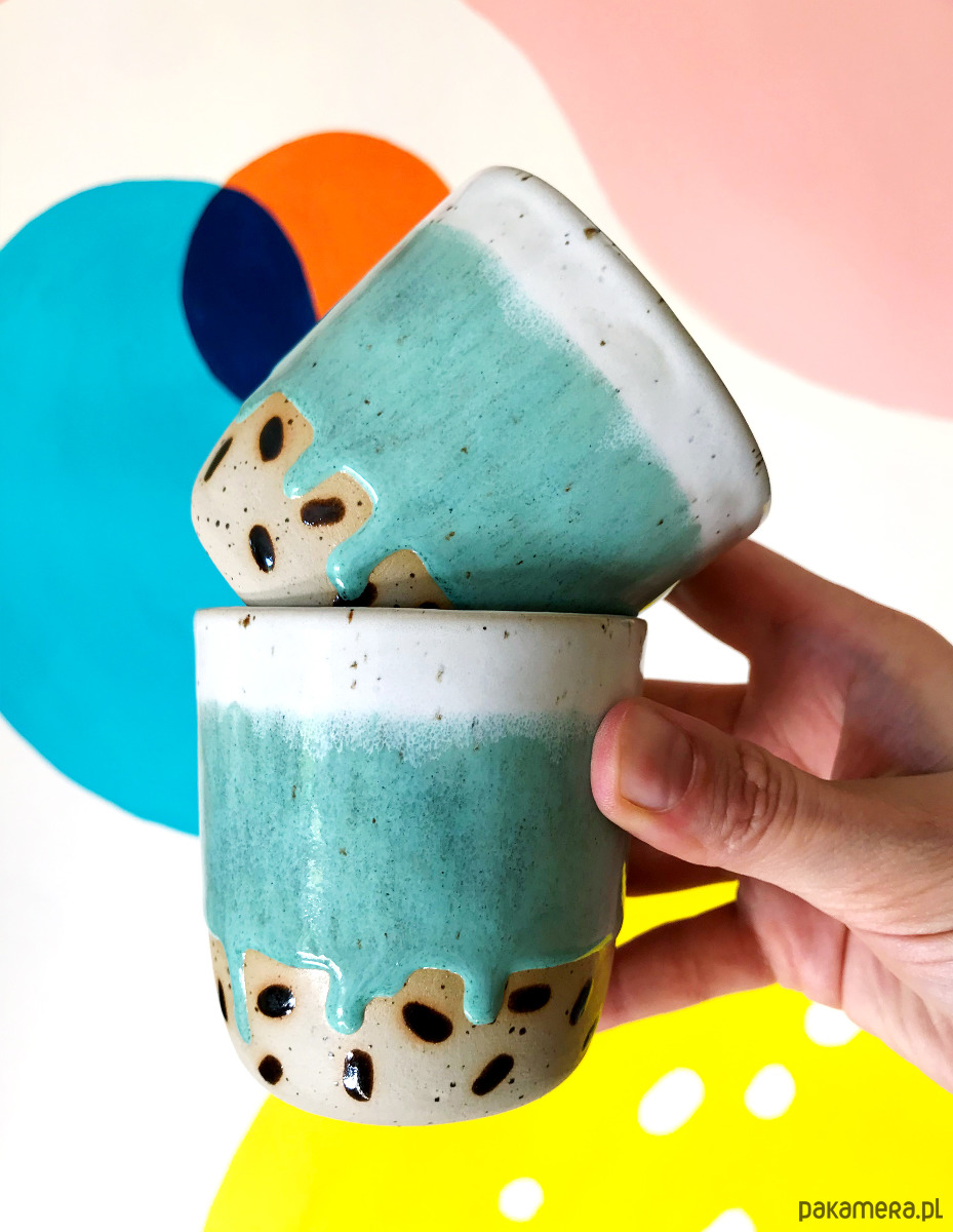Zestaw dwóch kubków inspirowanych kolorystyką arbuza. Czerwone szkliwo wewnątrz. Stworzone, by umilić Ci każdy dzień.