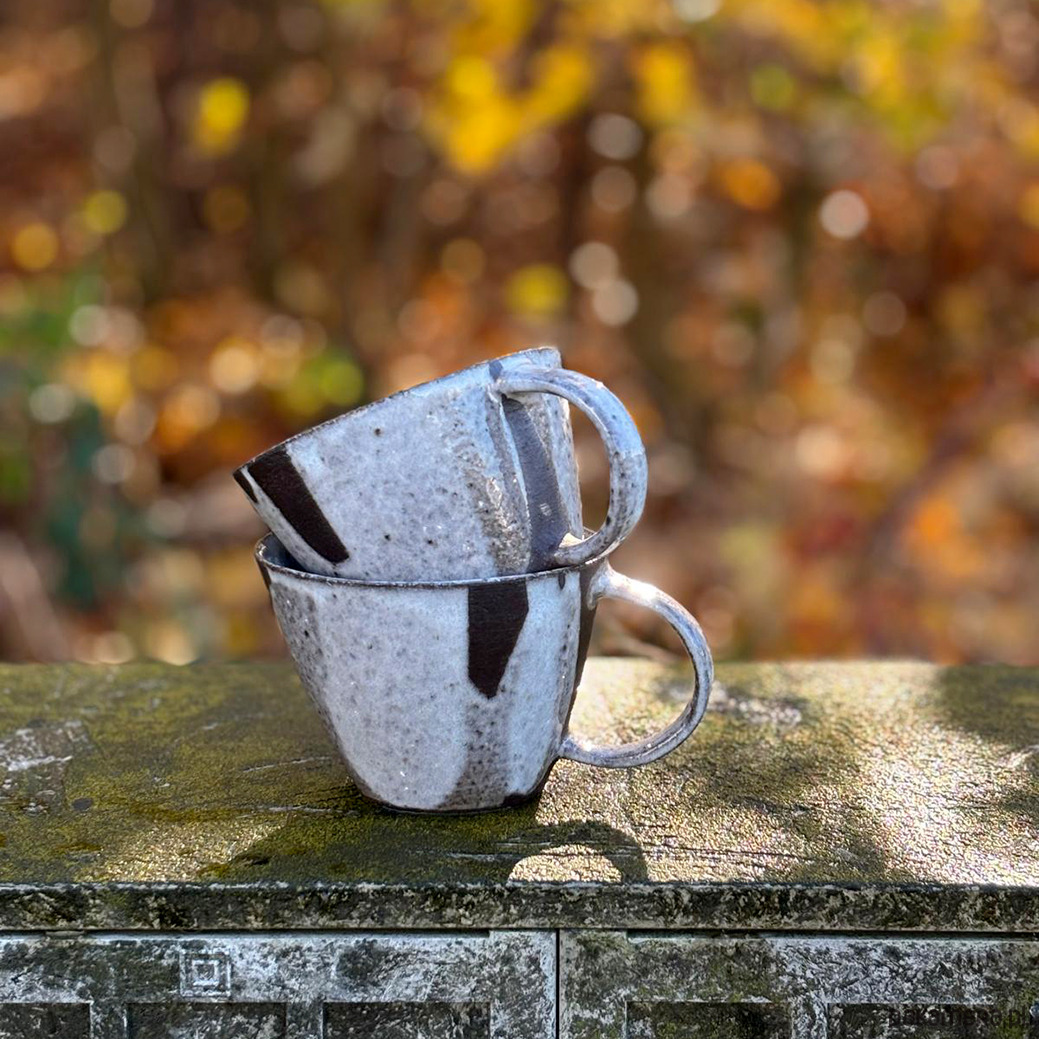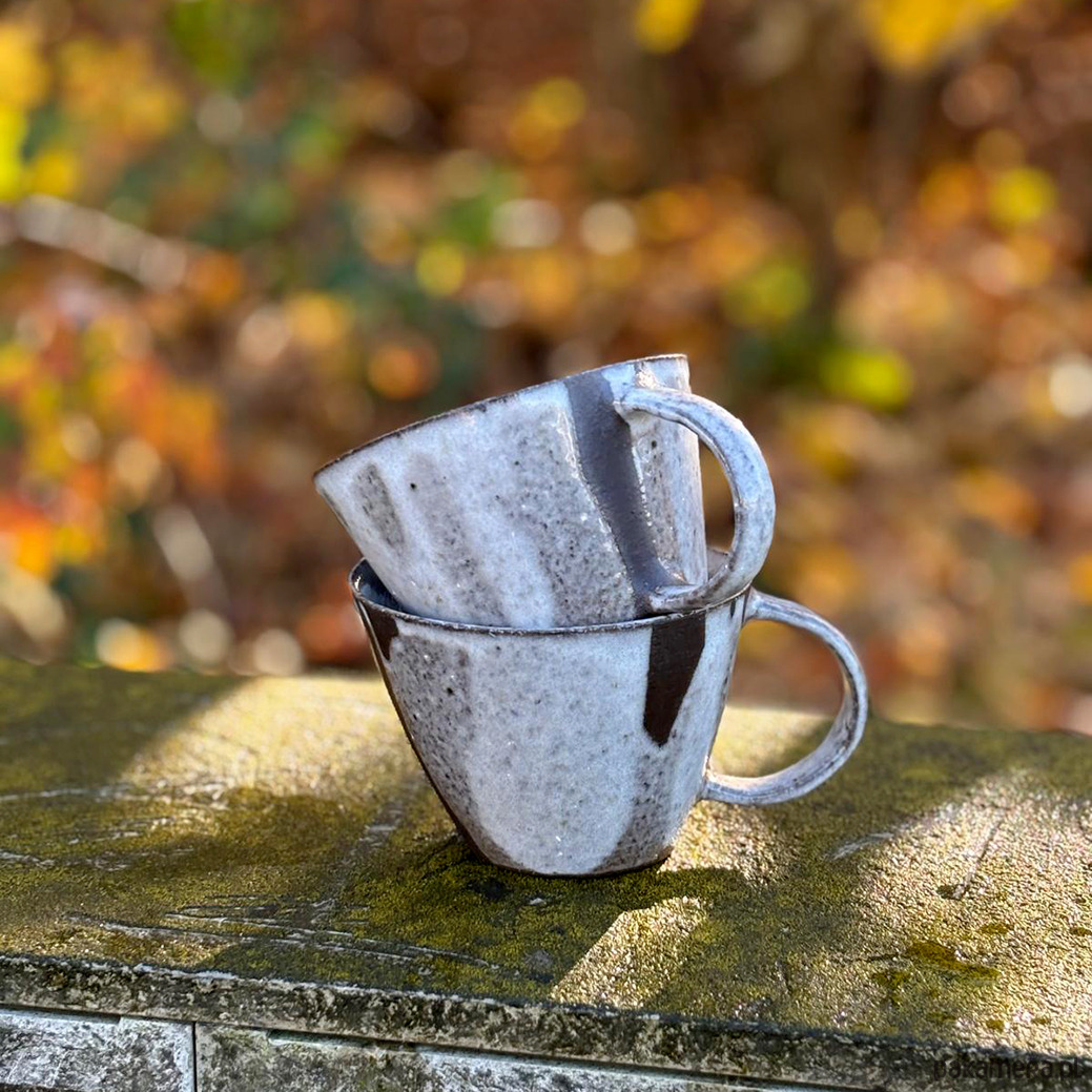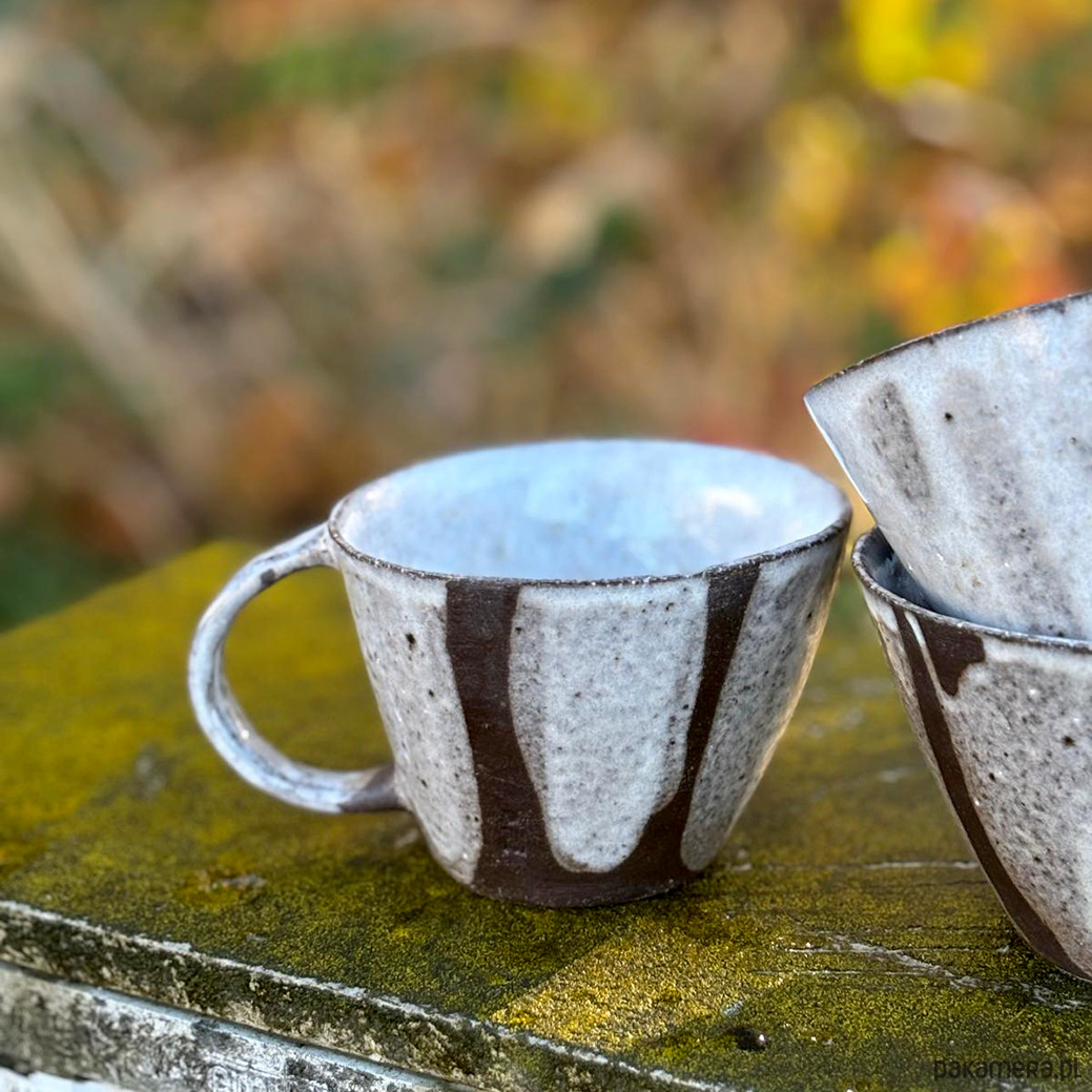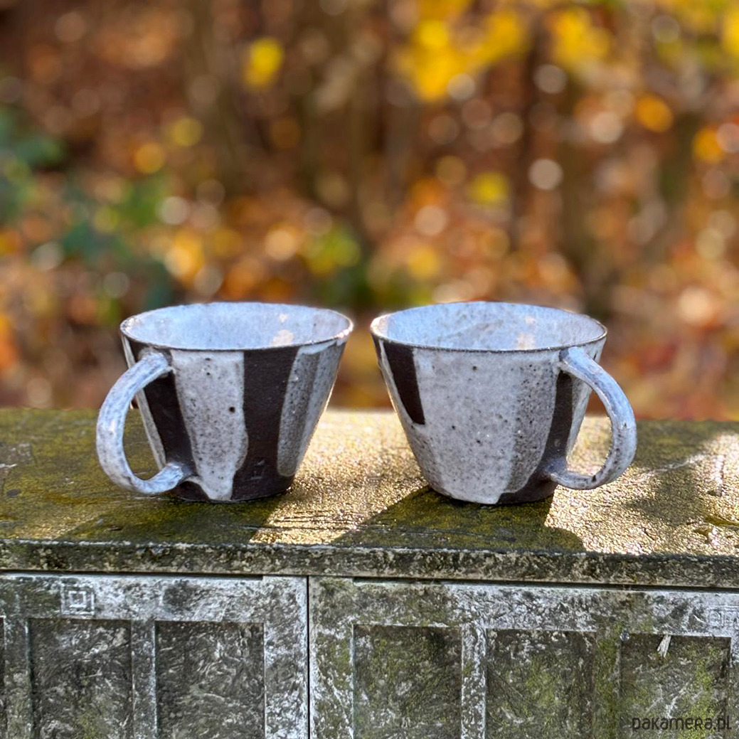 Duży, pojemny, kształtny, lejkowaty, rustykalny kubek z uchem.