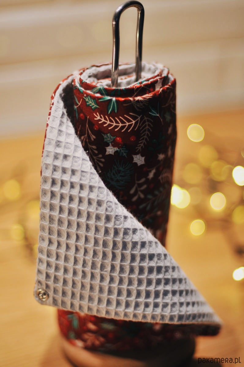 Ręczniki posiadają na rogach metalowe napy, które pozwalają spiąć je razem i założyć na rolkę, można je również ułożyć po prostu na blacie bądź w pojemniku.