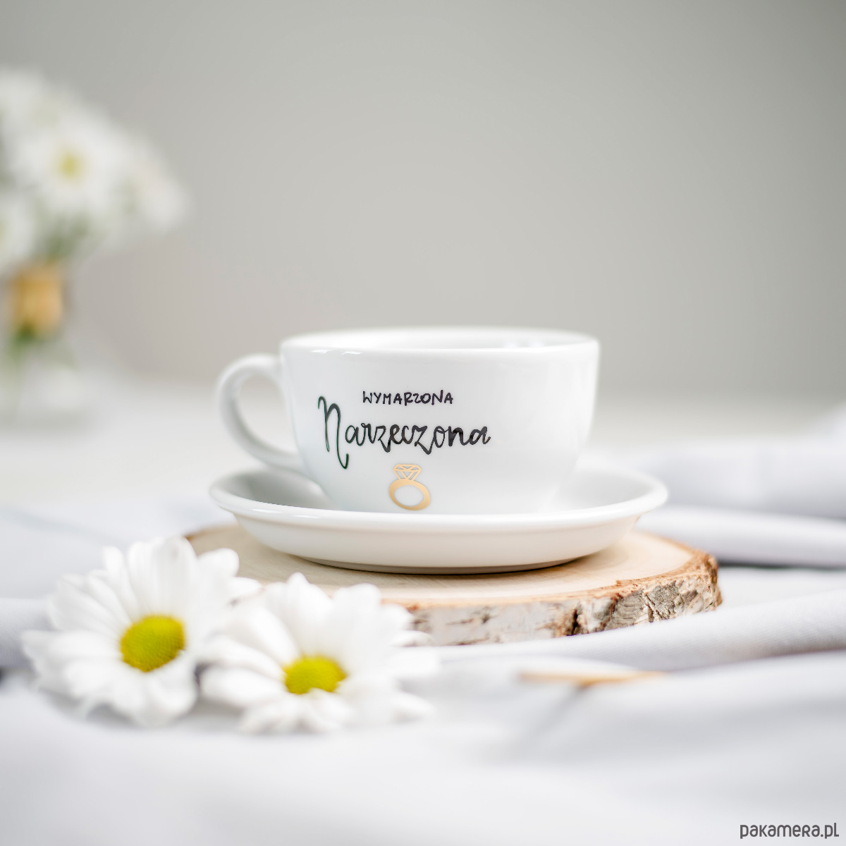 Nadzwyczajna, porcelanowa, ręcznie malowana filiżanka z napisem