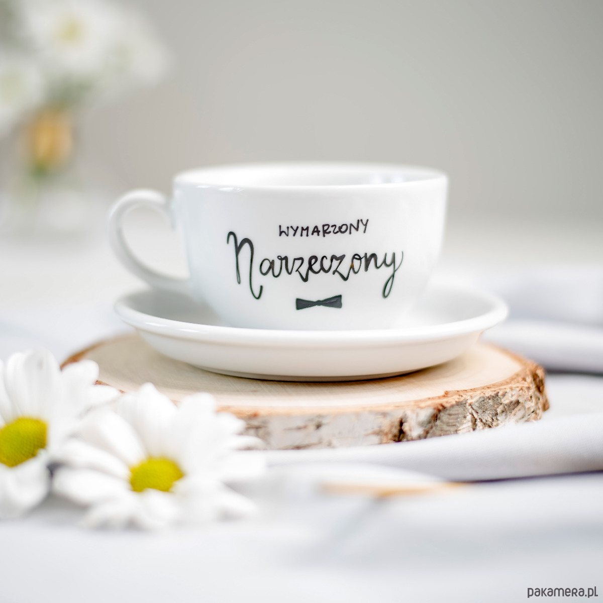 Nadzwyczajna, porcelanowa, ręcznie malowana filiżanka z napisem