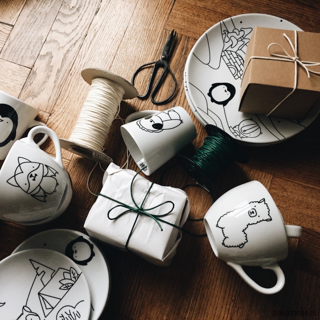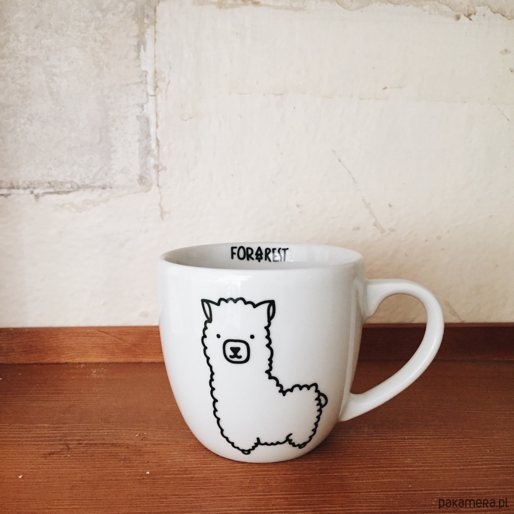 Biały kubek na kawę i herbatę zdobiony według autorskiego projektu.