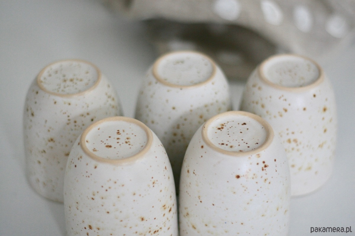 na zewnątrz szkliwo białe matowe z drobnymi brązowymi kropkami