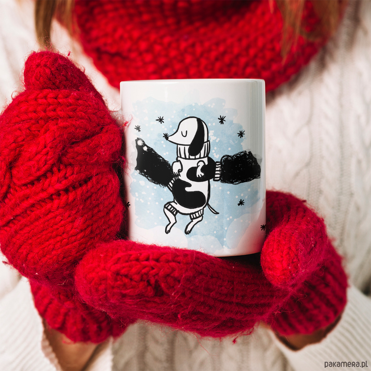 Nasze kubki ceramiczne mają pojemność 330 ml. Używamy wysokiej jakości atramentów, dzięki czemu można myć kubki w zmywarce i używać w kuchence mikrofalowej.