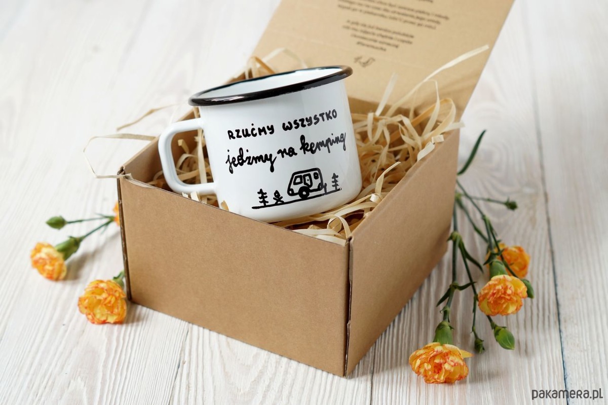 Kubek wysyłamy estetycznie zapakowany, gotowy na prezent. Do każdego dołączamy saszetkę herbaty owocowej.