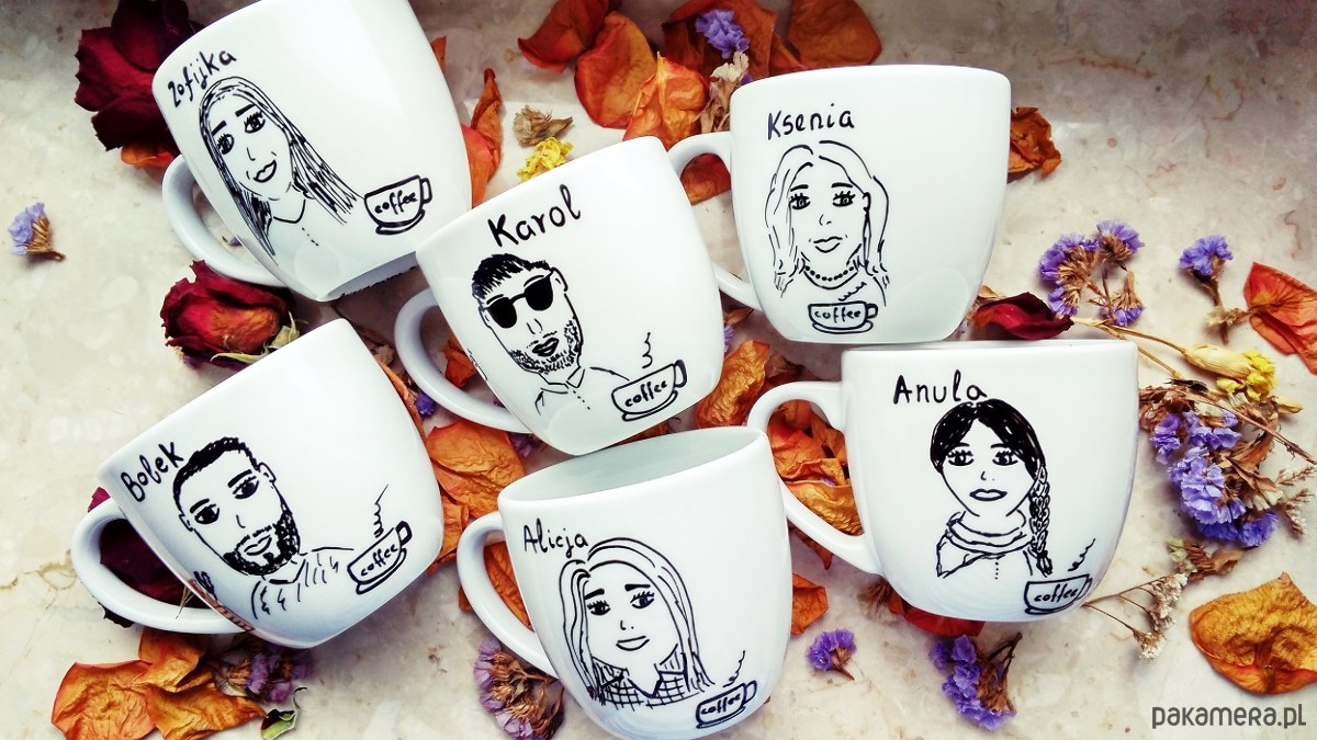 Po dokonaniu zakupu proszę o przesłanie zdjęcia lub informacji opisujących przyszłego użytkownika (np. szczupła, krótkie czarne włosy lub kucyk, piegi, okulary, lubi czytać, lubi piłkę nożną itp.) oraz tekst, jaki ma być napisany na kubku nad rysunkiem + ewentualne hasło na drugiej stronie kubka.
