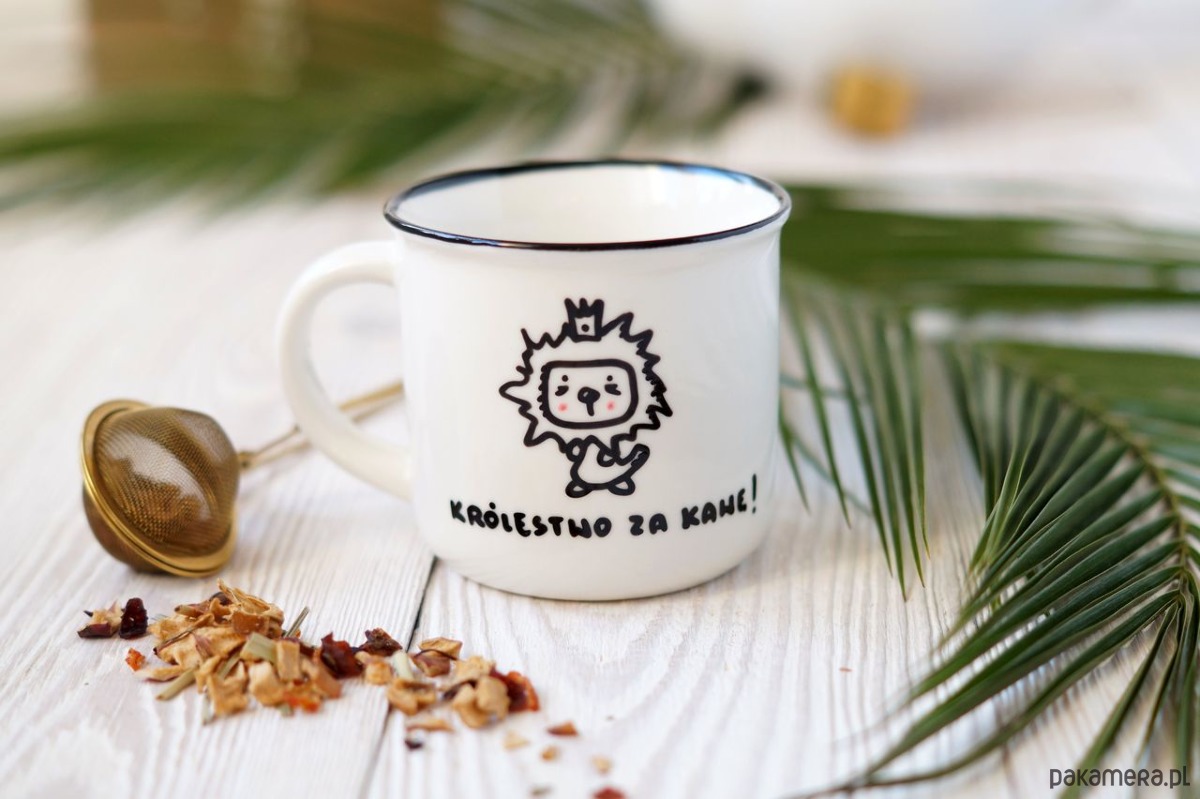 Kubek wysyłamy estetycznie zapakowany, gotowy na prezent. Do każdego dołączamy saszetkę herbaty owocowej.