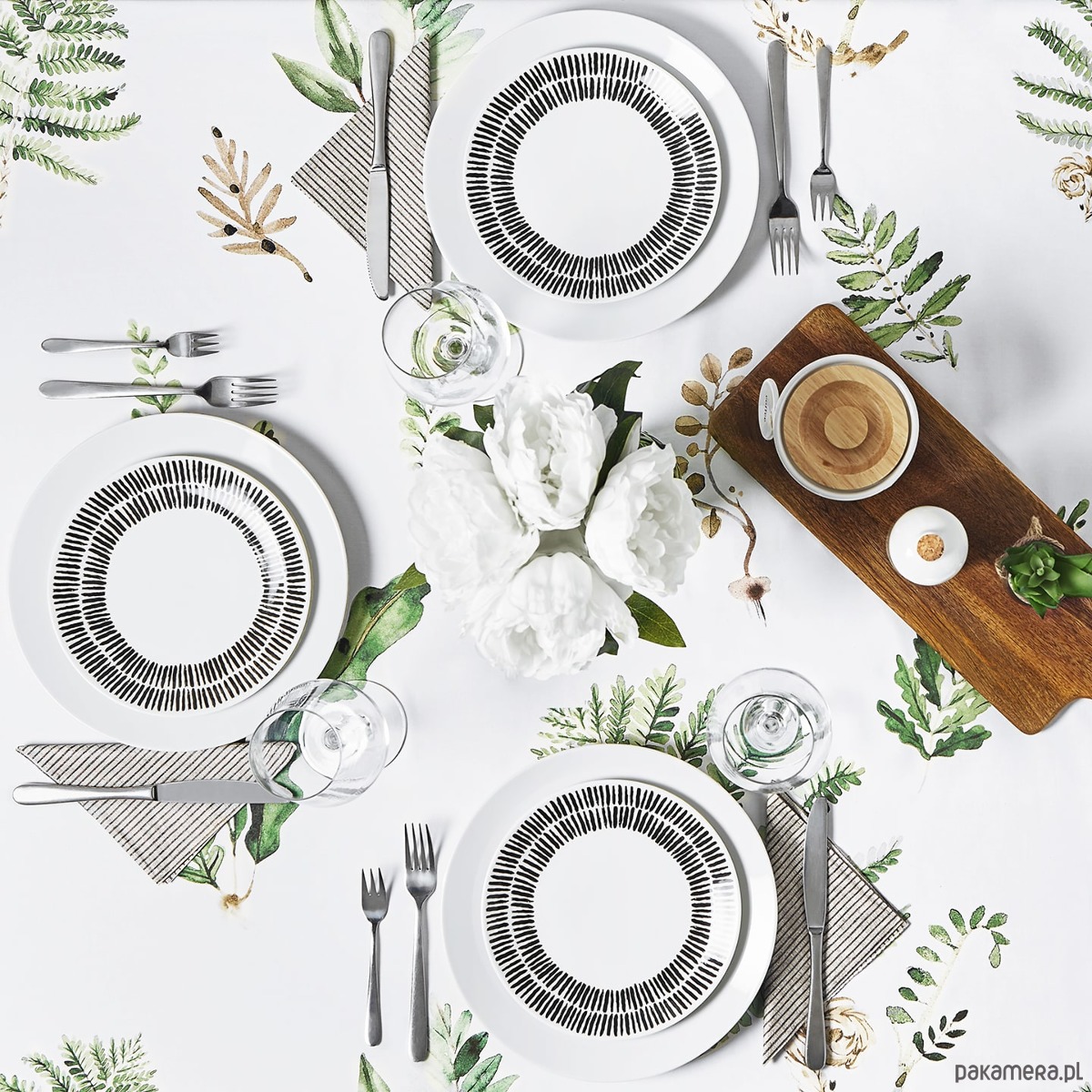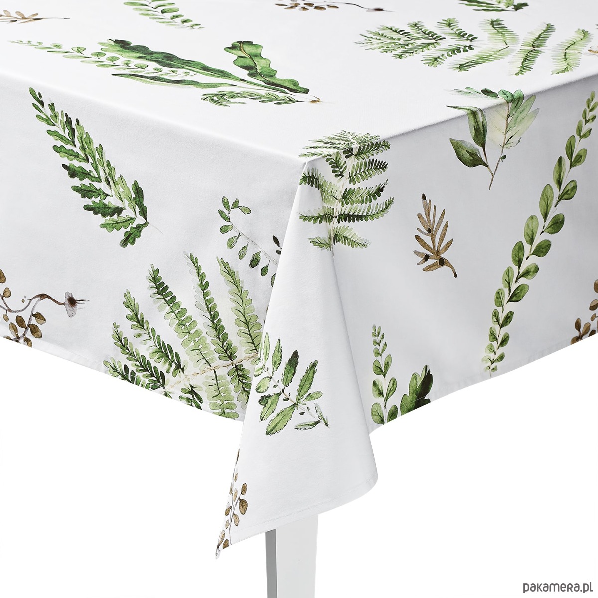 Obrus z grubszej bawełny w malowane paprocie. Doskonała dekoracja stołu.