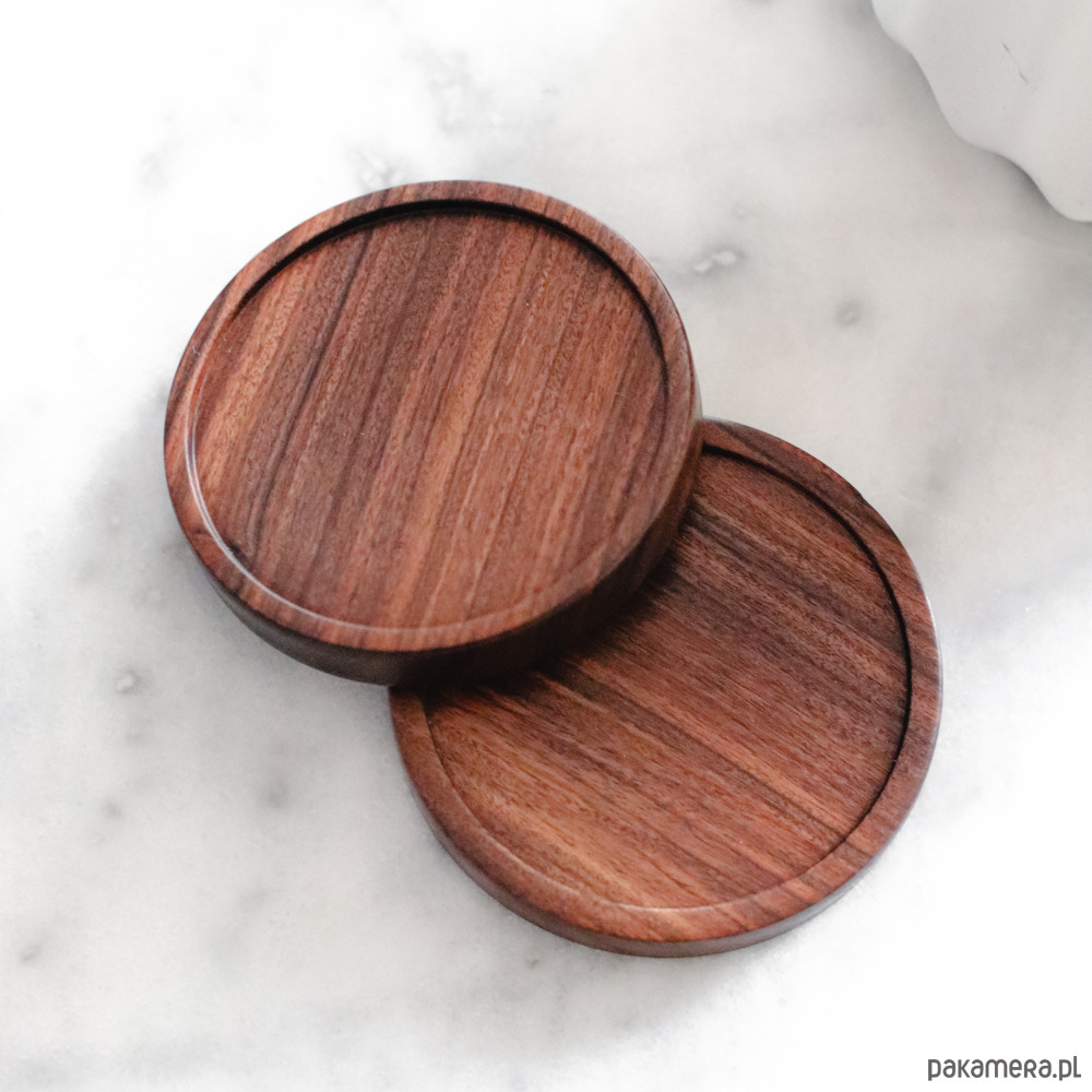 Dwie podstawki wykonane ręcznie z pojedynczego kawałka egzotycznego drewna PALISANDER SANTOS, które charakteryzuje się twardością oraz unikalnym kolorem.
