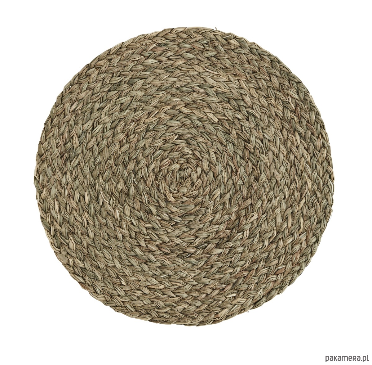 Okrągła podkładka w stylu boho, wykonana z trawy morskiej, zaplatanej w trwały i mocny splot. Podkładka doskonale nadaje się jako podstawka pod talerz czy pod gorące naczynia, chroni blat stołu ale jednocześnie dekoruje monotonię na Twoim stole.