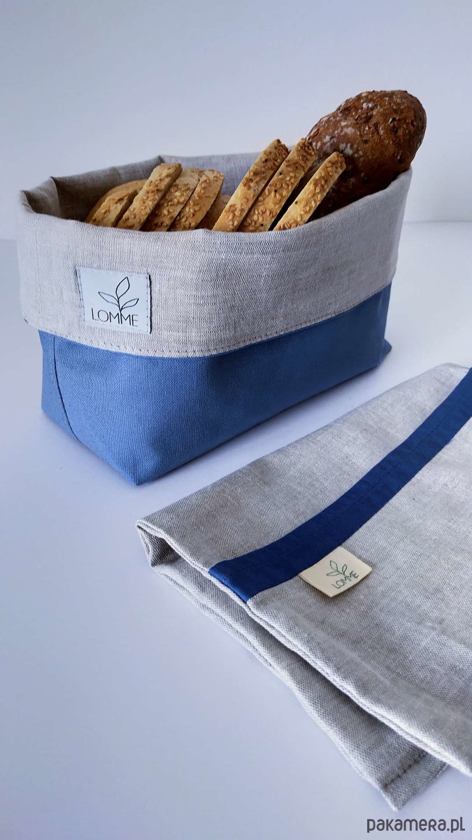 Zestaw Lniany koszyk na chleb/ ciastka + woreczek na chleb
