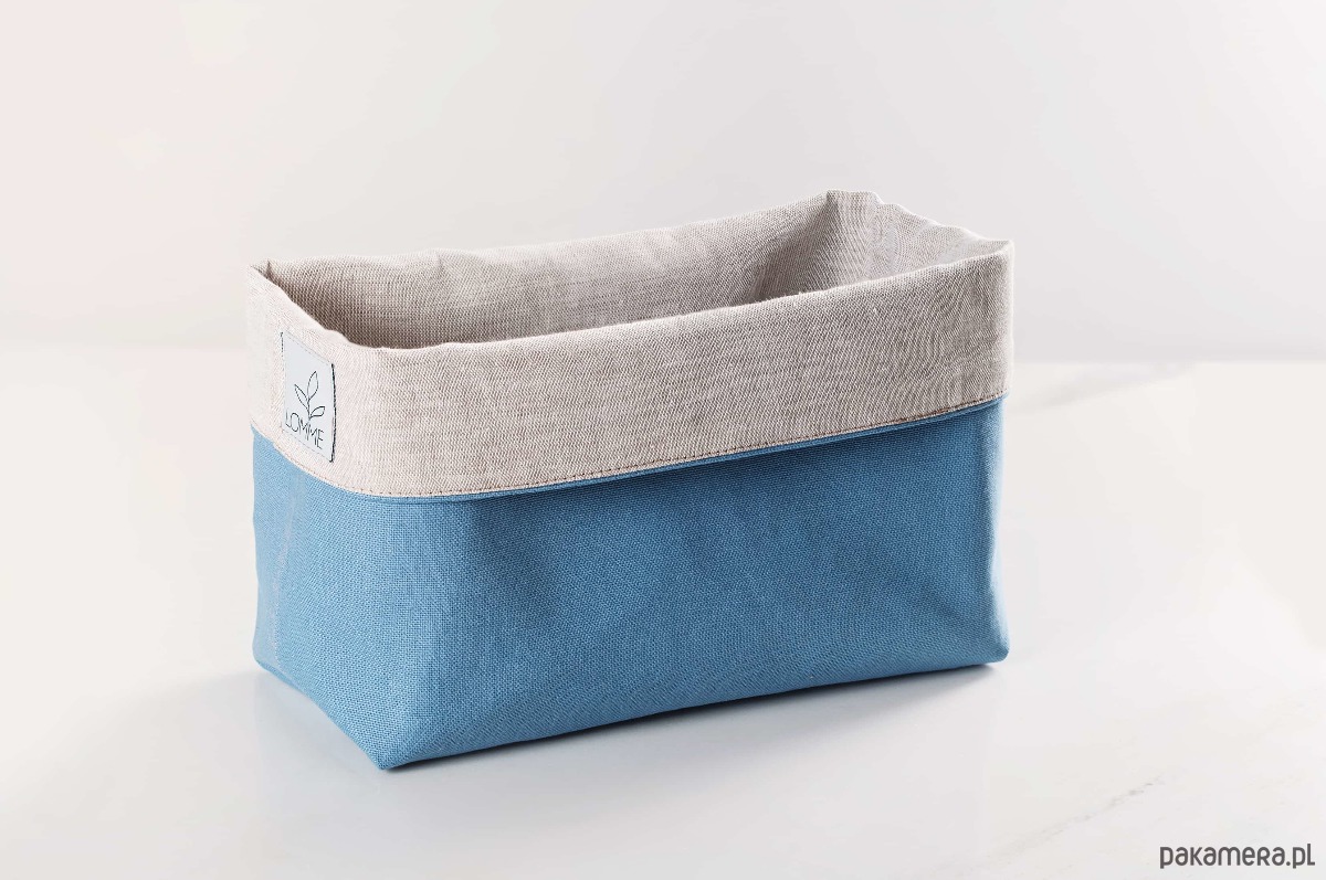 Koszyk uszyty z bawełny Canvas oraz naturalnego lnu. 100% cotton, Oeko-tex 100. Torebka uszyta z lnu, kolorowa lamówka z bawełny .
