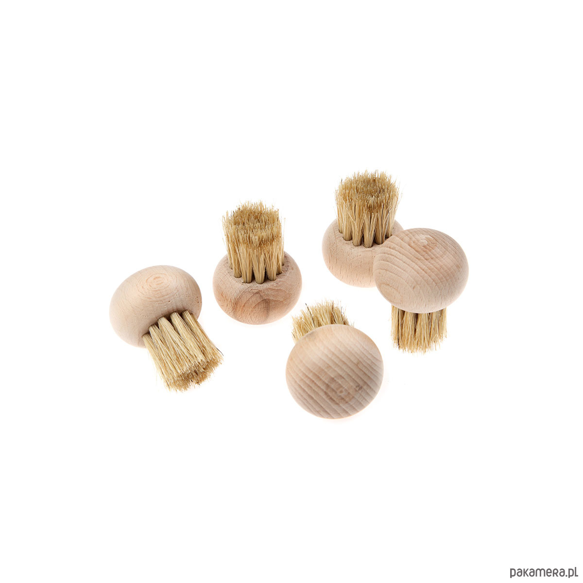 Szczoteczka do grzybów z naturalną, sztywną, ale delikatną szczeciną czyści grzyby z ziemi, piasku i resztek leśnej ściółki. Mały, poręczny kształt kulki z bukowego drewna.