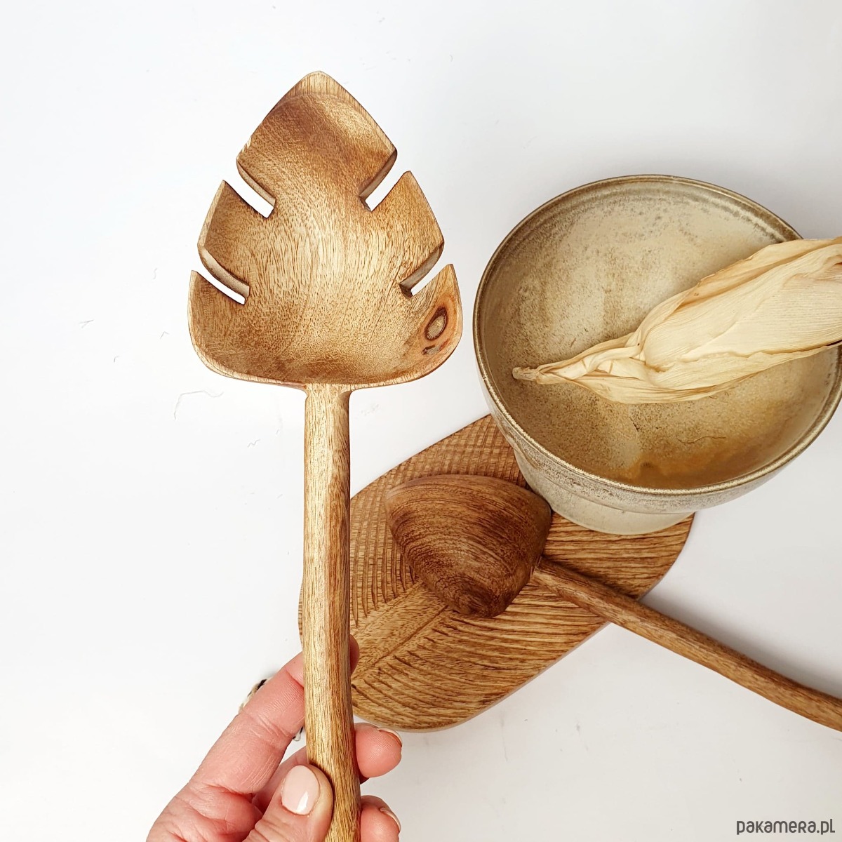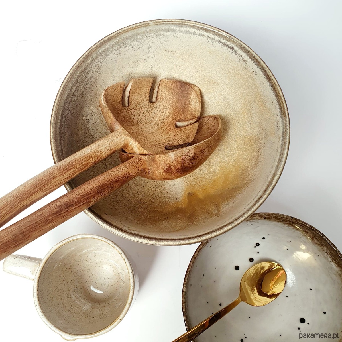 Przepiękny zestaw do serwowania sałaty w postaci łyżki i widelca stanie się prawdziwą ozdobą Twojego stołu. Sztućce zostały wykonane z wysokiej jakości naturalnego drewna. Mamy więc pewność, że nie stracą one swojego wyjątkowego wyglądu przez bardzo długie lata. Rączki są odpowiednio długie dzięki czemu mieszanie sałaty jest bardzo wygodne a także na pewno nie wypadną one z miski. Odpowiednio wyprofilowane ułatwiają szybkie nabranie odpowiedniej ilości sałaty. Ciekawy pomysł na praktyczny i miły upominek dla bliskiej osoby lub na parapetówkę. Doskonałe dla wszystkich którzy cenią sobie piękno i ponadczasową elegancję.
