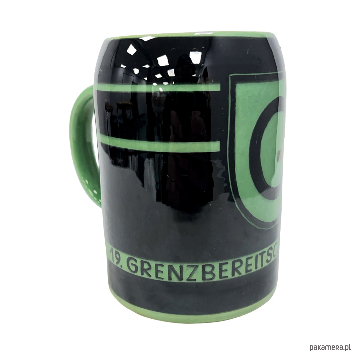 Kufel pamiątkowy wykonany dla 19. Grenzbereitschaft Pirna, jednostki wschodnioniemieckiej Straży Granicznej (NRD), lata 50. XX wieku.