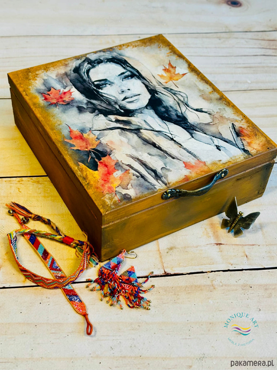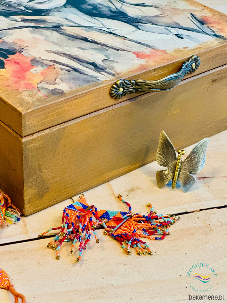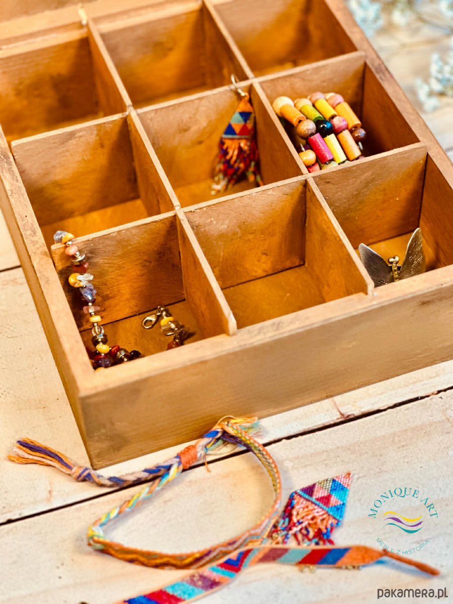 Drewniane pudełko na biżuterię albo na inne drobiazgi.