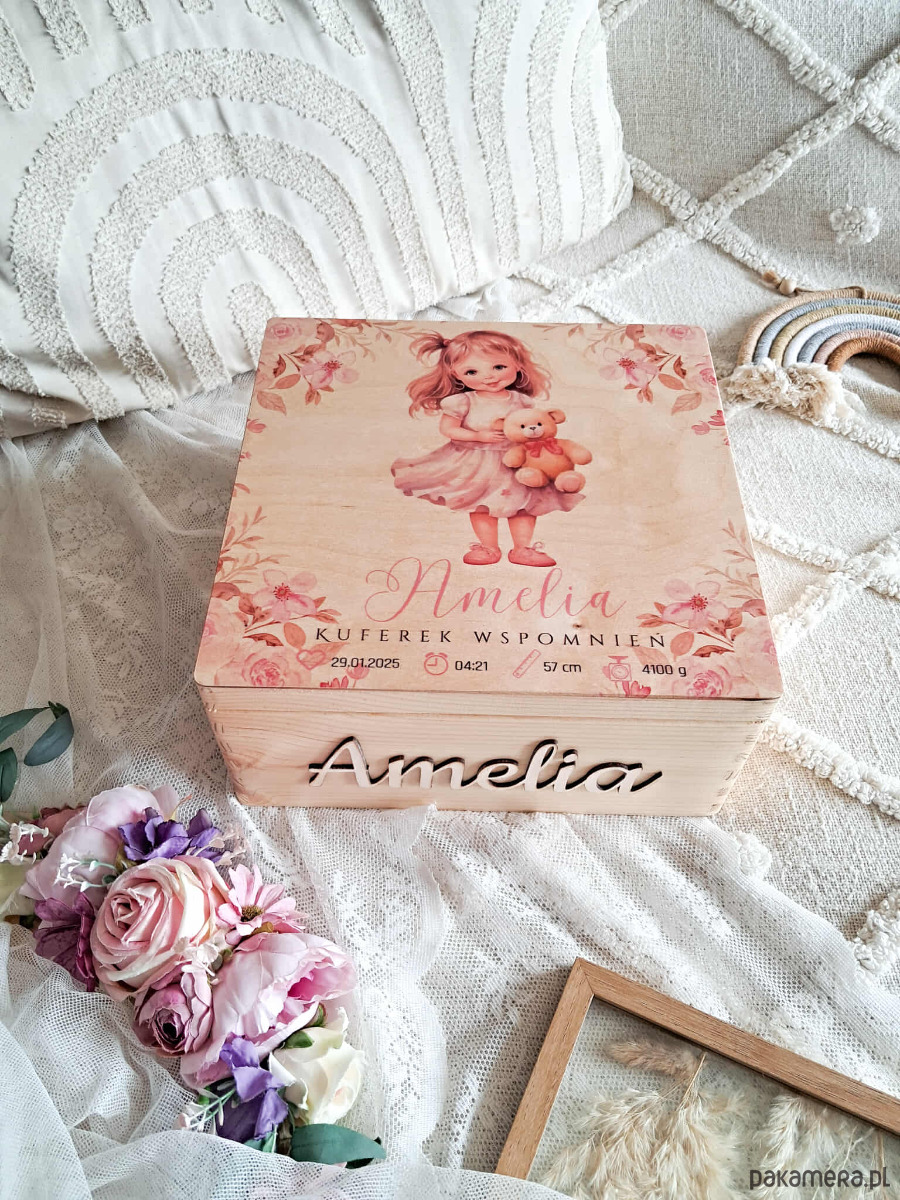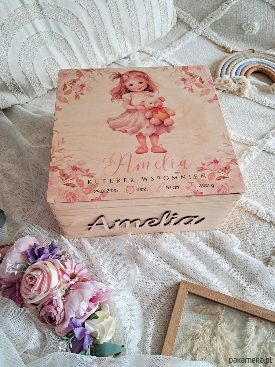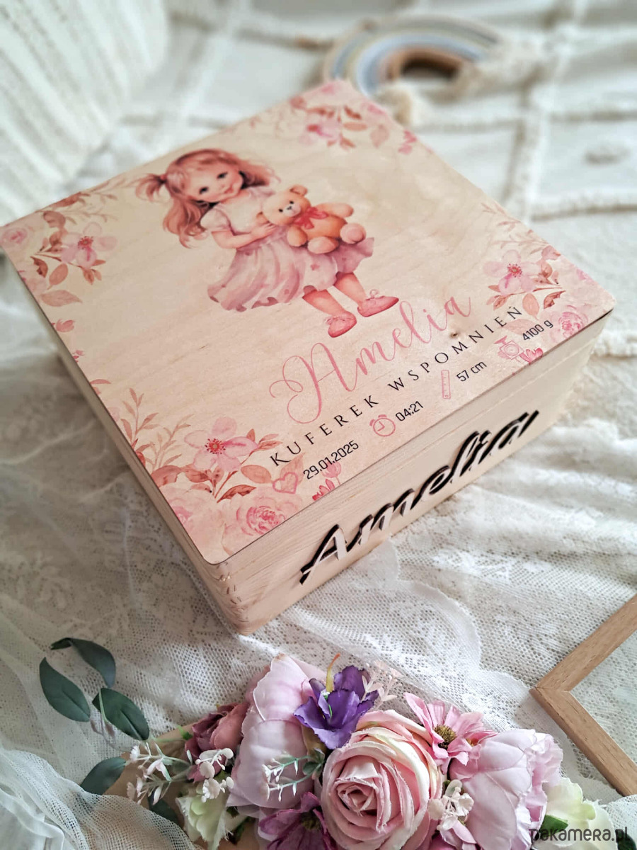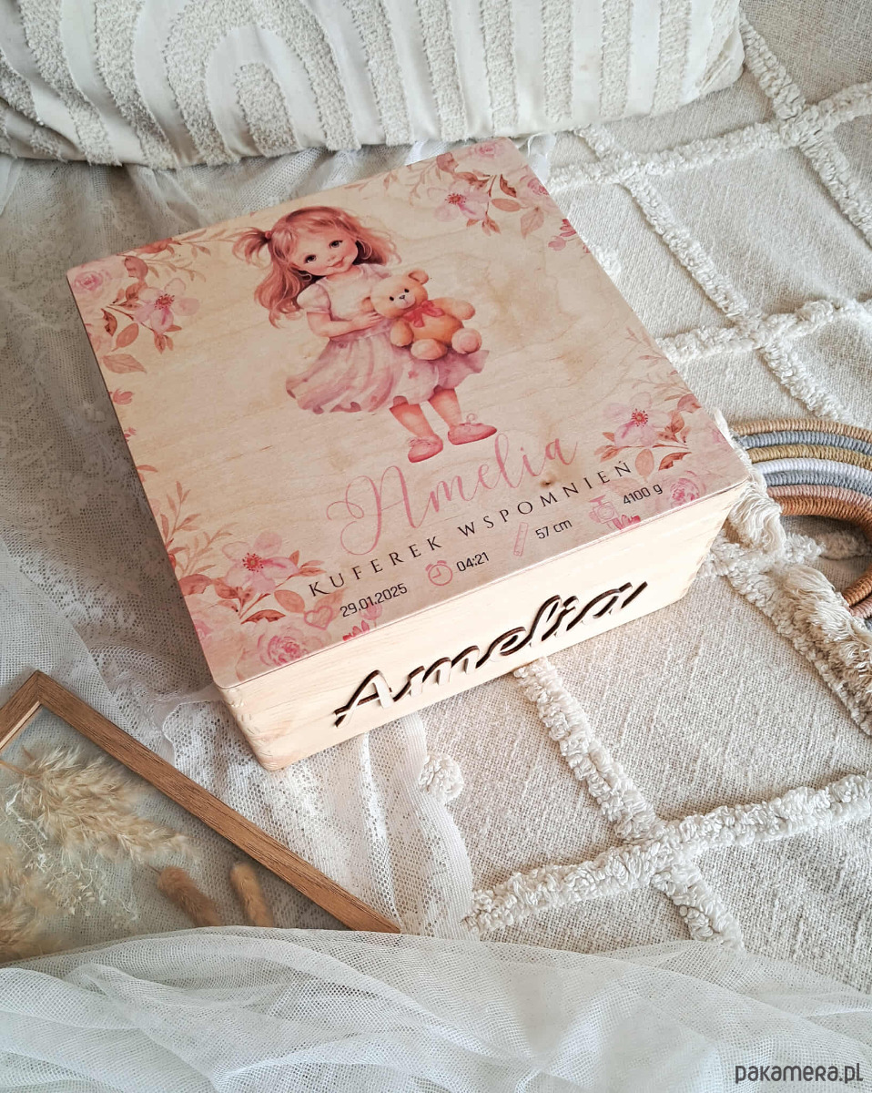 Piękny prezent dla dziewczynki. Drewniany, personalizowany kuferek do przechowywania pięknych wspomnień.