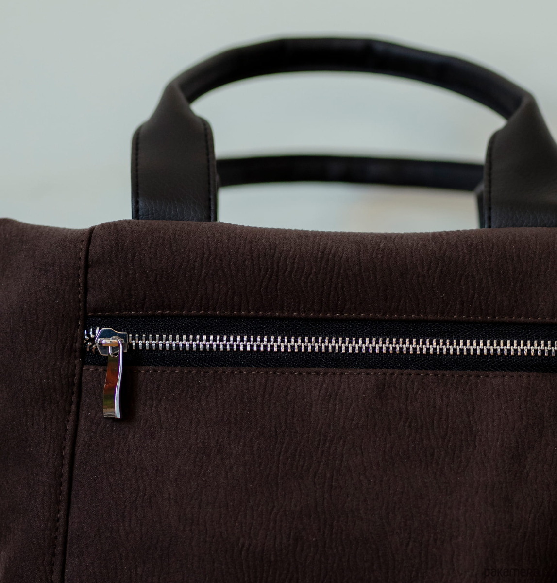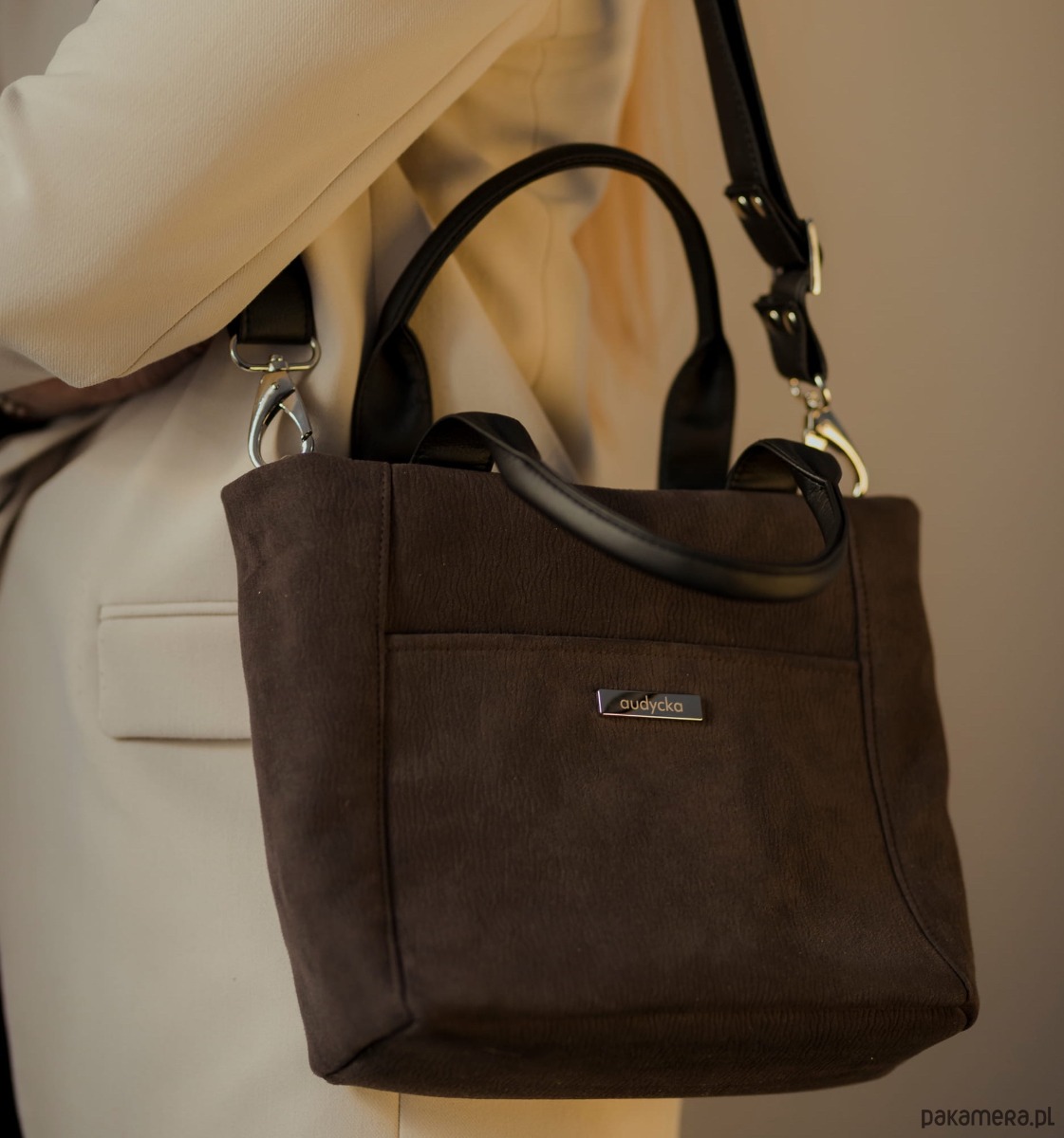 Materiał wierzchni: fantastycznej jakości gruby, wodoodporny, włoski nubuk ekologiczny typu Bukara. Łatwy w utrzymaniu czystości, wytrzymały na ścieranie. Rączki i długi pasek skóra ekologiczna.