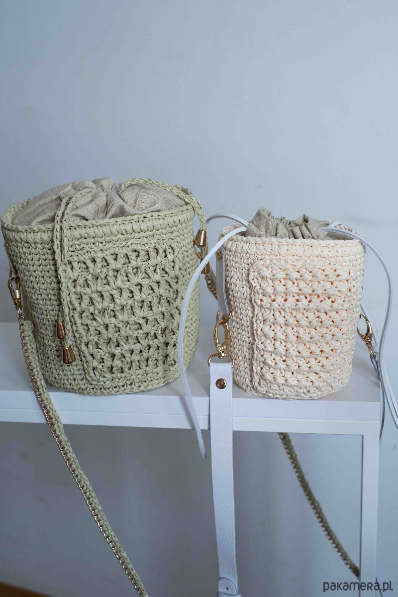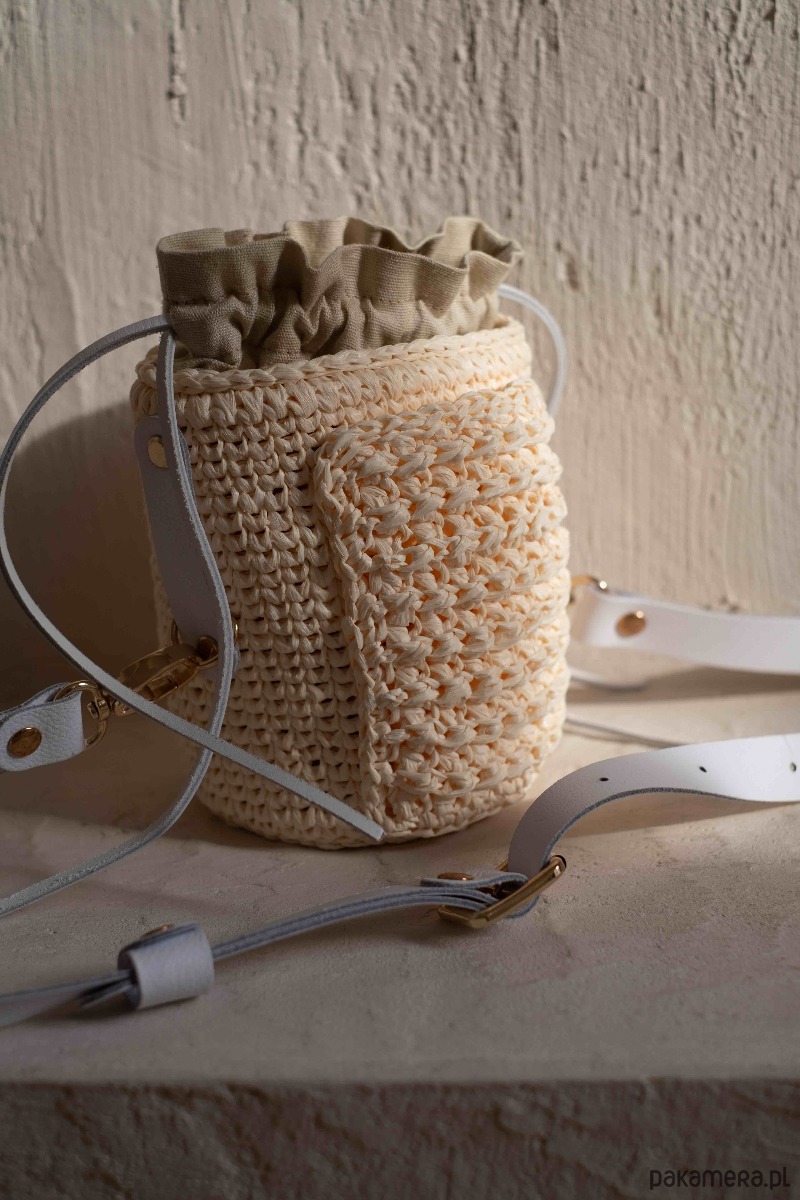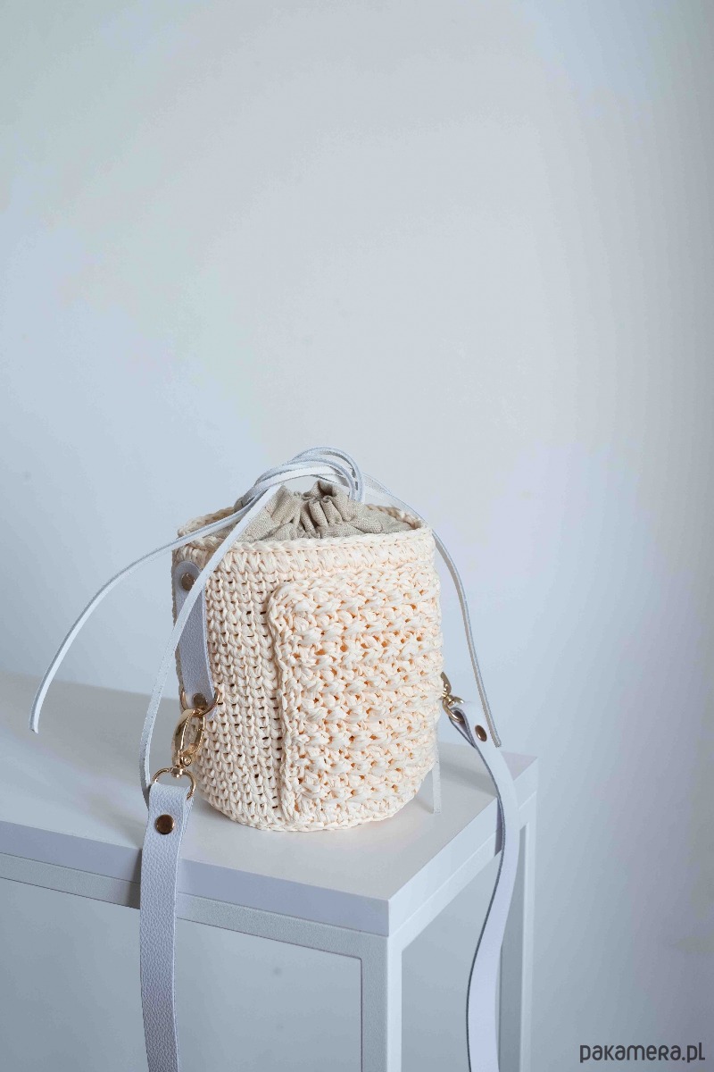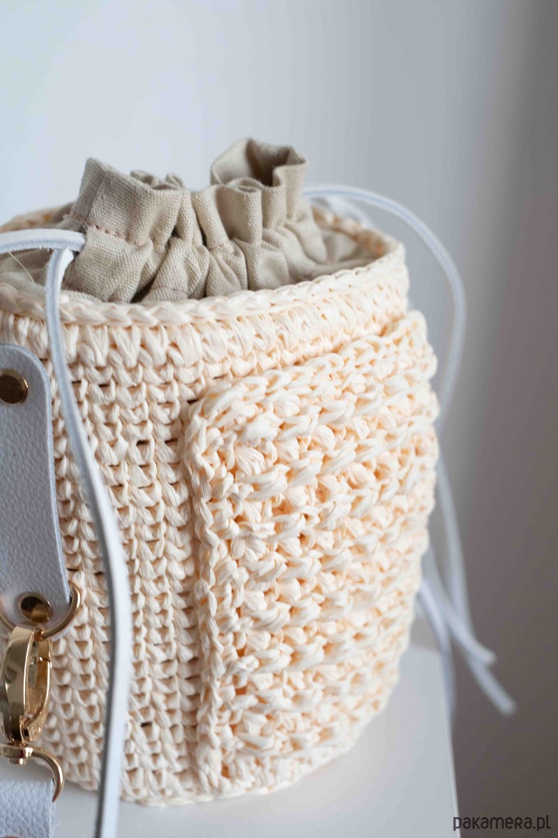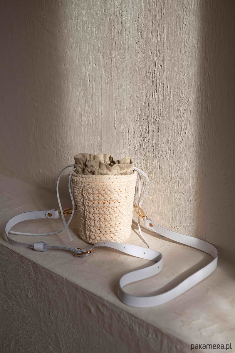 Kuferek Mia, handmade, rafia, ivory