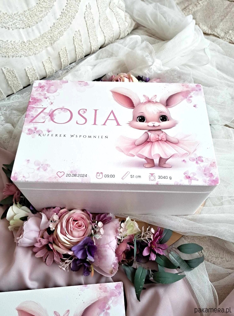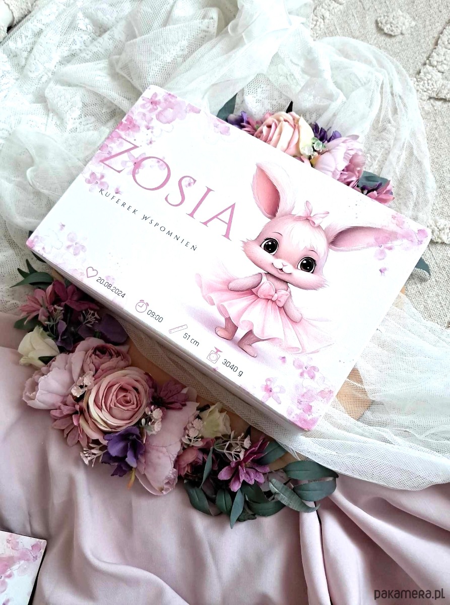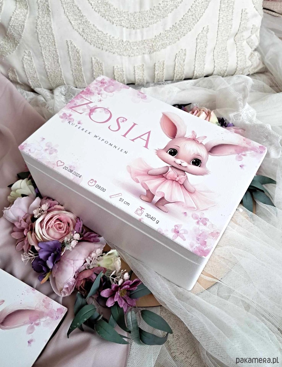 KUFEREK WSPOMNIEŃ KRÓLISIA z metryczką, prezent roczek, chrzest, narodziny