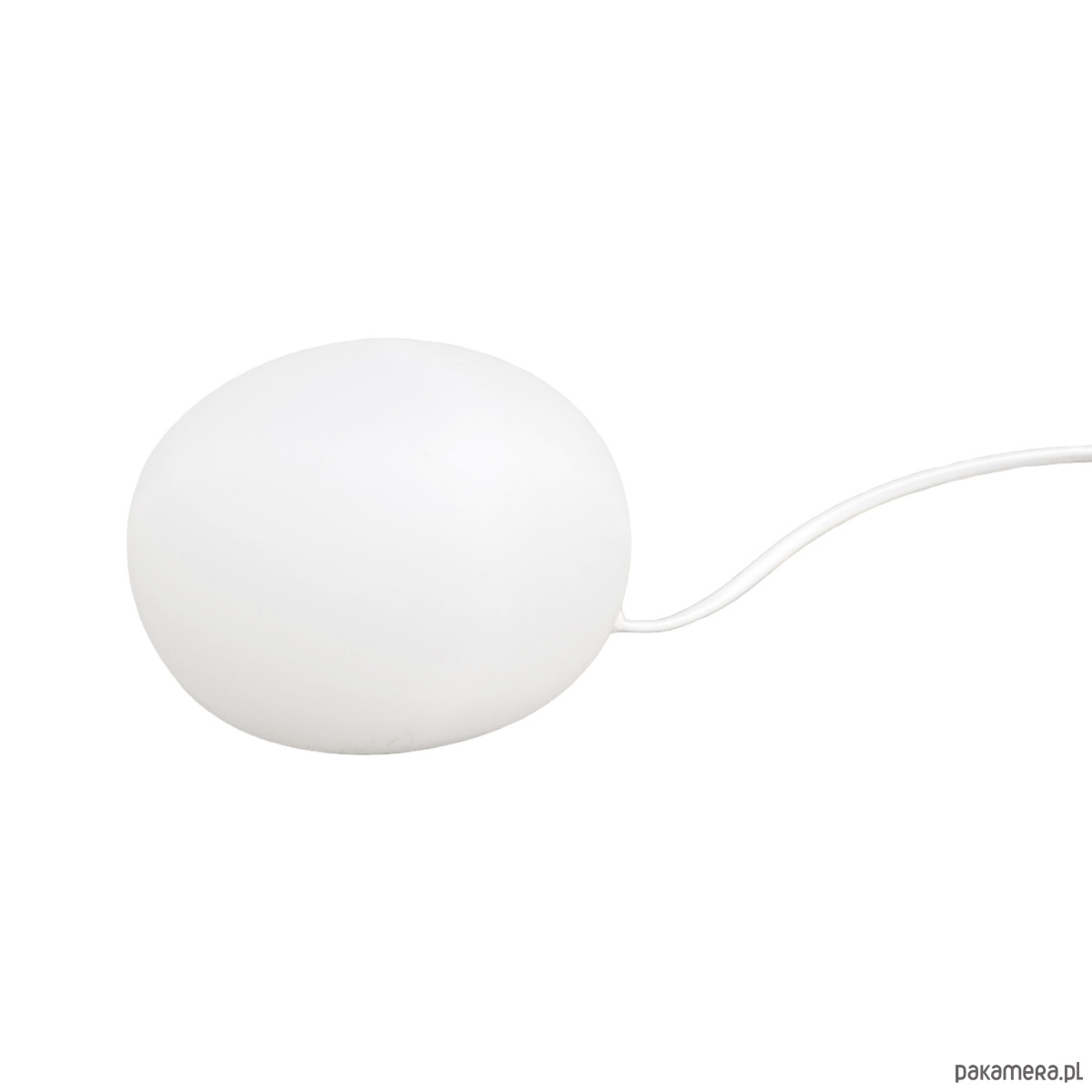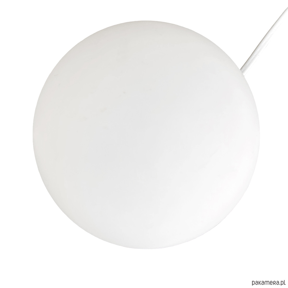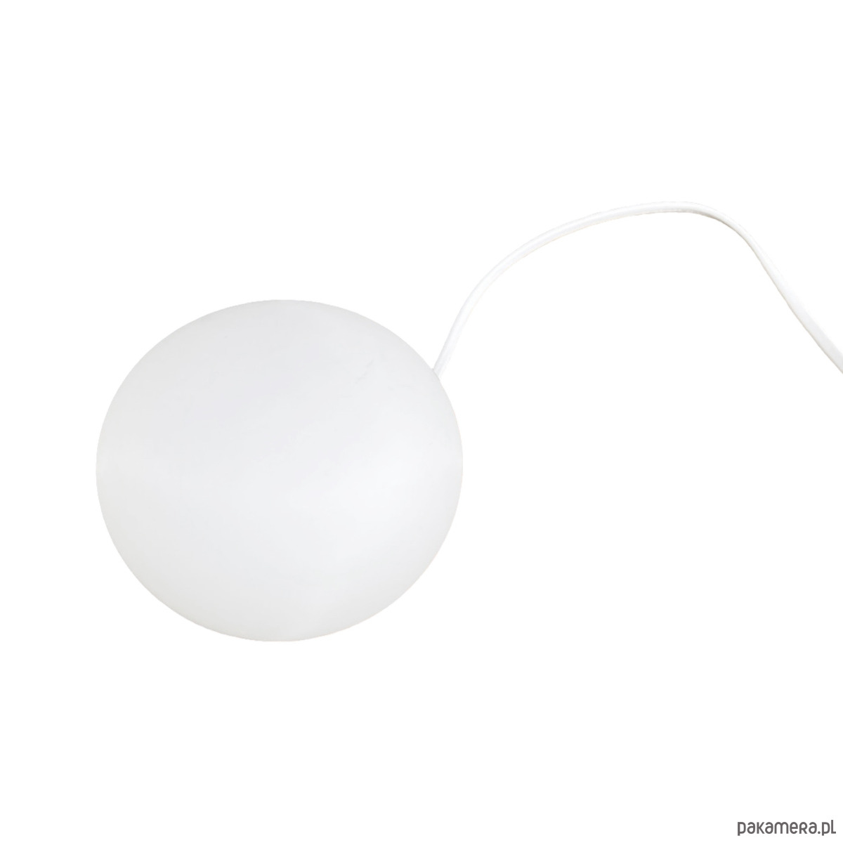 Prosta i elegancka lampka w formie mlecznej kuli, wykonana z tworzywa i szkła, w stylu modernistycznym z przełomu lat 90.
