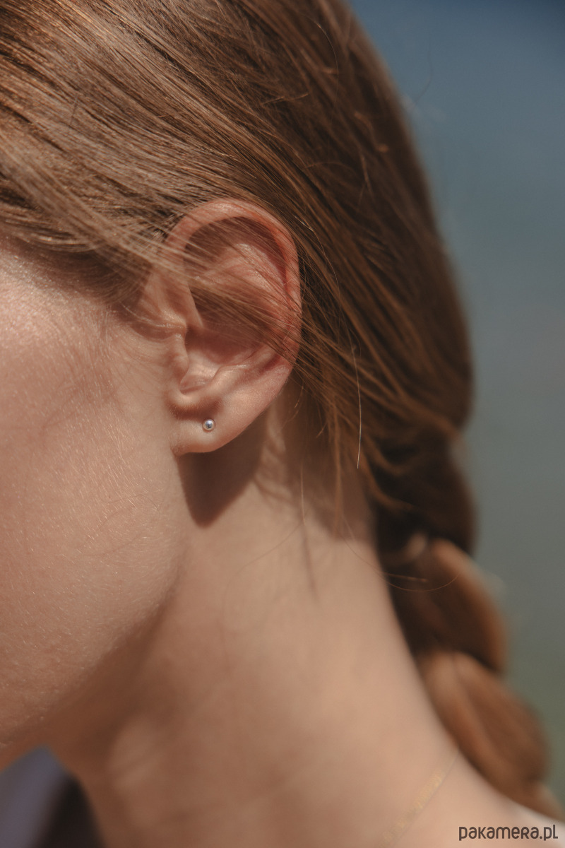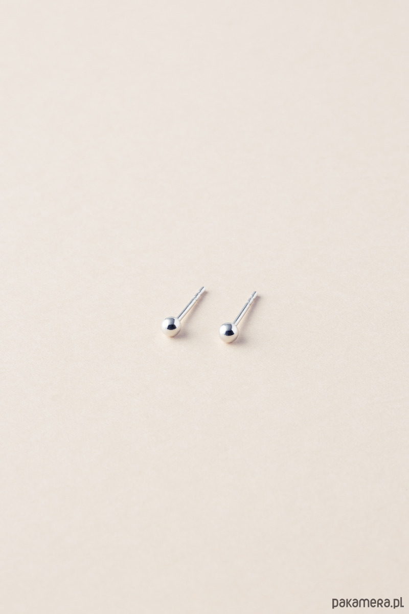 – ręcznie wykonane kolczyki ze srebra próby 925 składające się z kuleczki o średnicy 3 mm