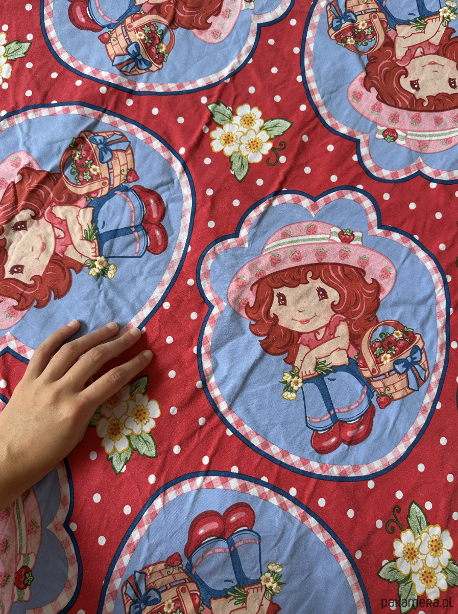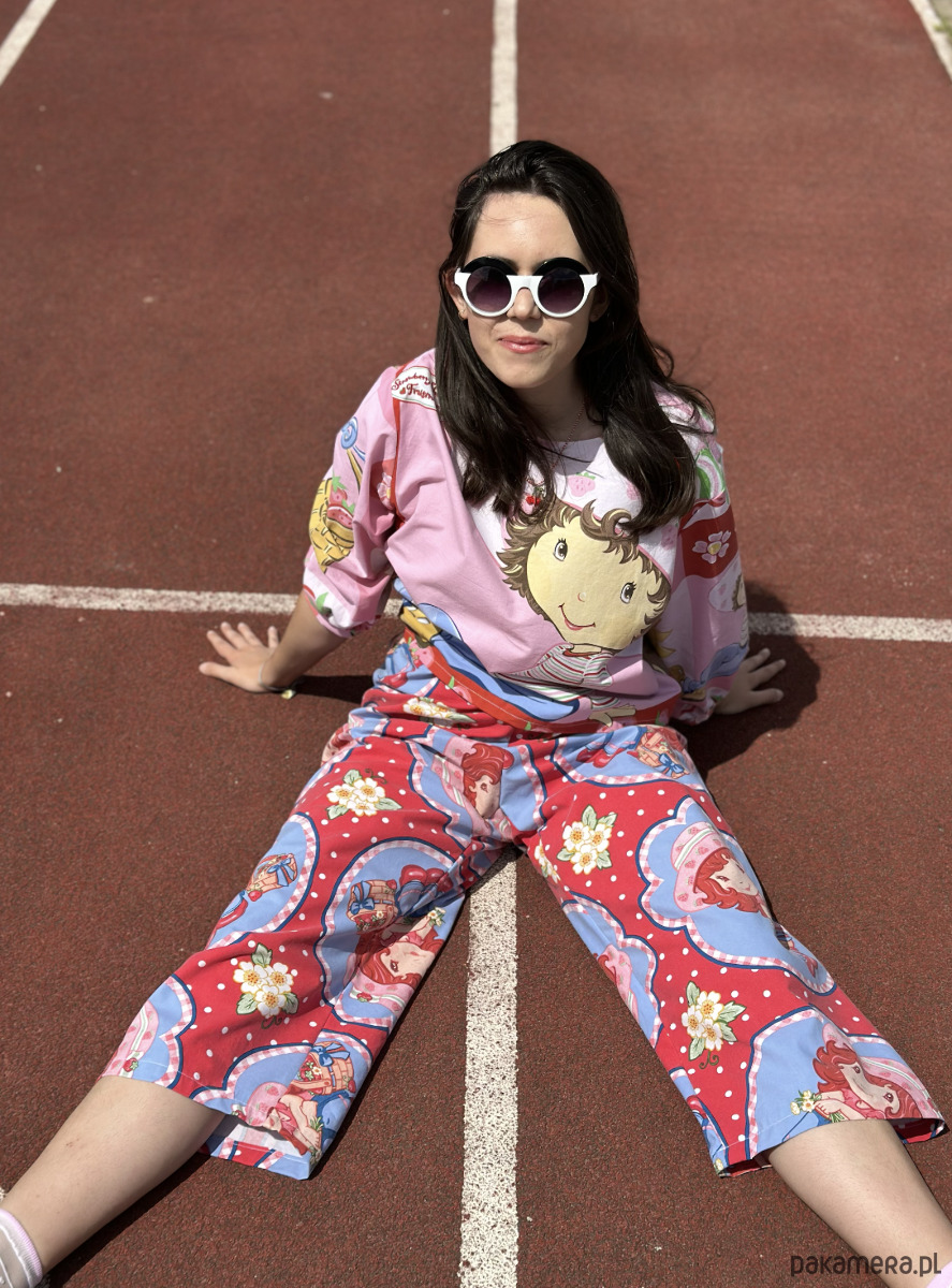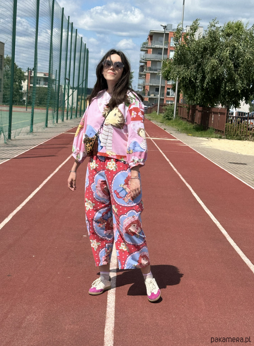 Oversizowe kuloty z pościeli z drugiego obiegu. Materiał został znaleziony w lumpeksie, przysłała nam go obserwatorka albo zdobyłam go na jednej z grup internetowych.