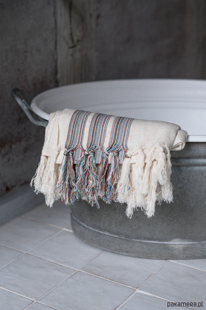 Kumru to cienki bawełniany ręcznik turecki w kolorze złamanej bieli z kolorowymi pasami. Zajmuje mało miejsca, dzięki czemu jest doskonały do zabrania w podróż. Jego niesamowita chłonność świetnie sprawdzi się w saunie. A dodatkowo - miękki, zwiewny, dzięki czemu może posłużyć jako szal do okrycia czy lekki kocyk.