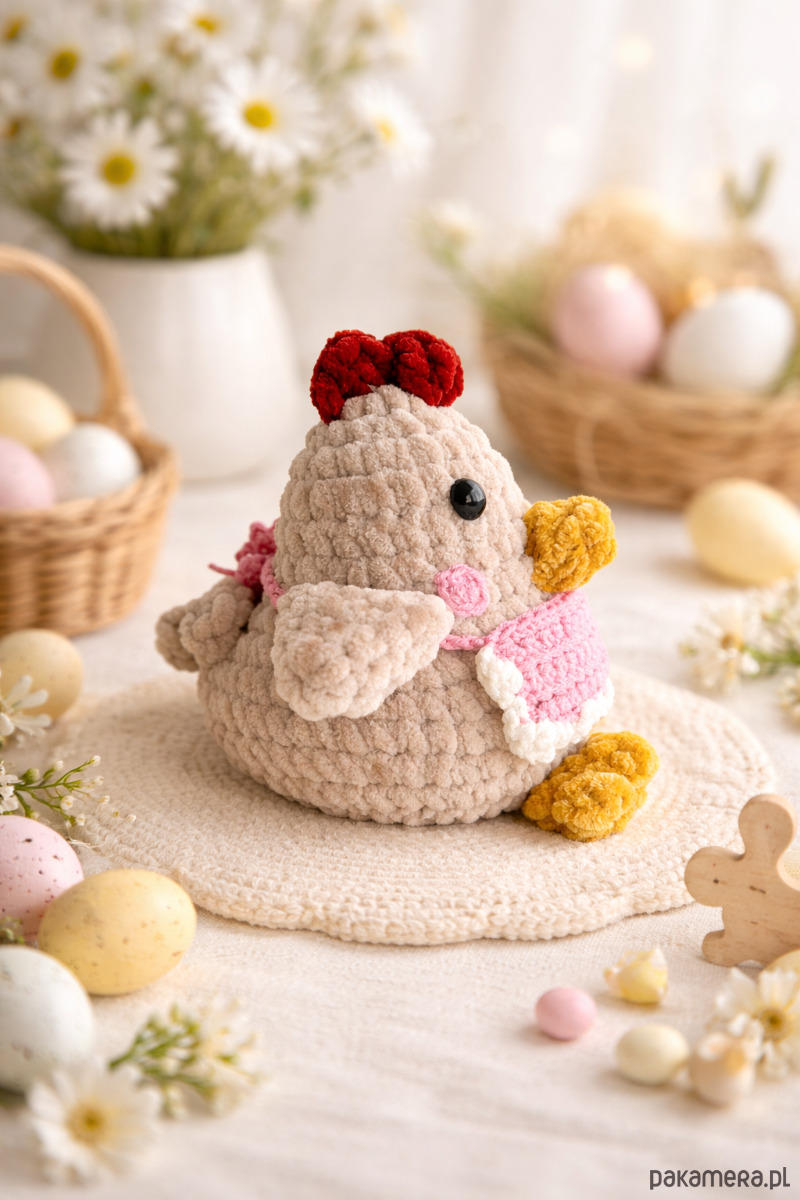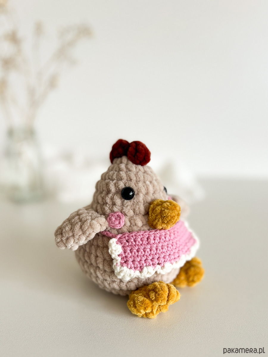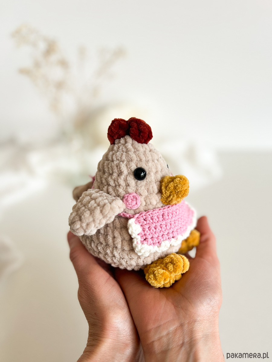 Kura. Wykonana z miłością i starannością, każda kurka jest unikatowa i charakterna. Pięknie ozdobi wasze wnętrza, idealnie nadaje się na wielkanocne dodatki do domu, ale co najważniejsze - jest mięciutka i miła w dotyku - dlatego idealnie nadaje się dla małych rączek. Fartuszek jest zdejmowany. Można w uwagach do zamówienia wpisać swój własny kolor fartuszka - jeśli wolelibyście inny.