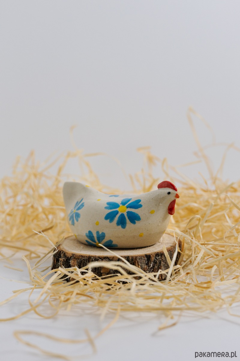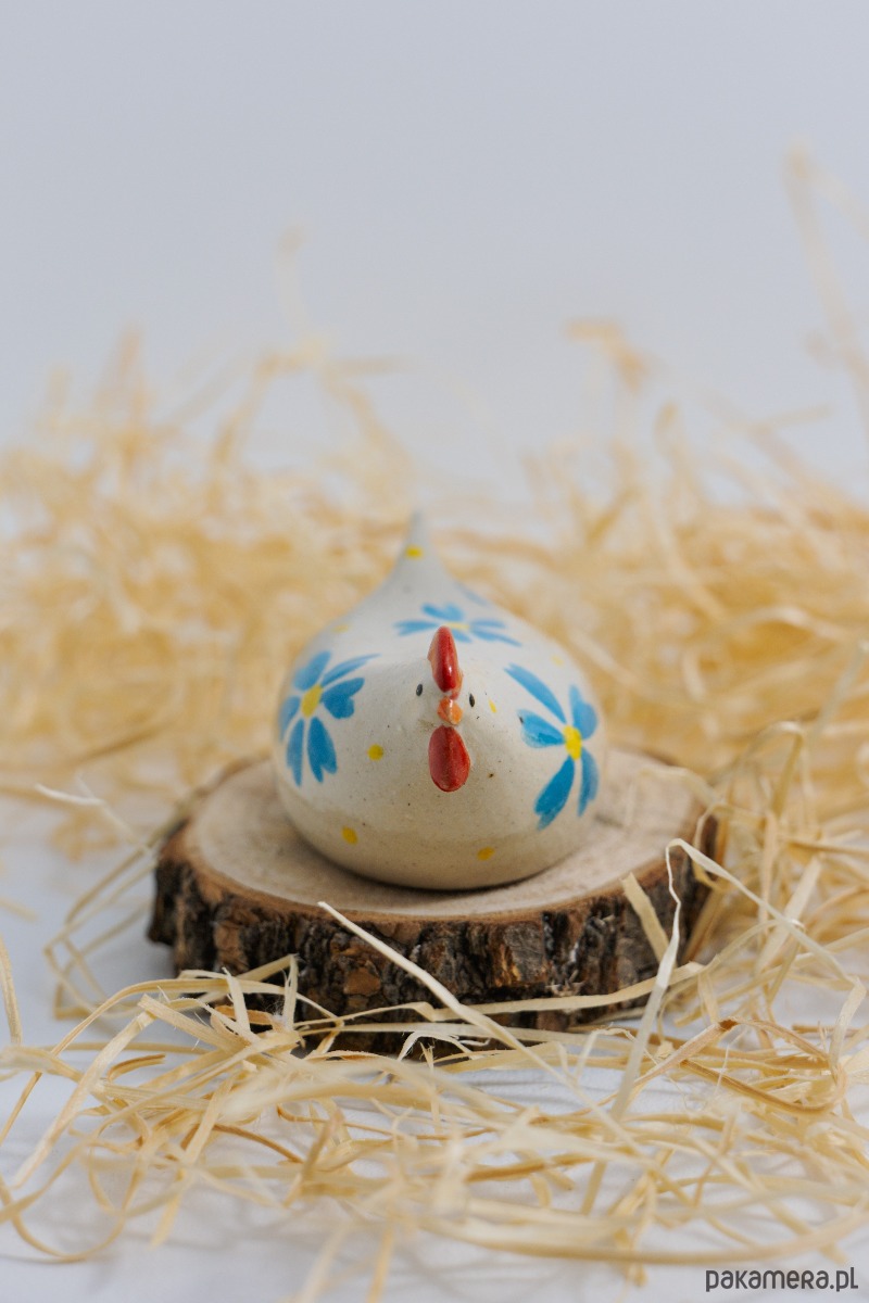 Każdy kurkowy egzemplarz ma inny motyw – kropki, kwiaty, cętki. Figurka wnosi ciepło i lekkość do wnętrza, stając się miłym wiosennym akcentem. Ozdobi też wielkanocny stół, koszyczek i kwiatowe aranżacje. Jej spokojna forma i delikatne zdobienia dobrze komponują się z naturalnymi materiałami i jasnymi wnętrzami.