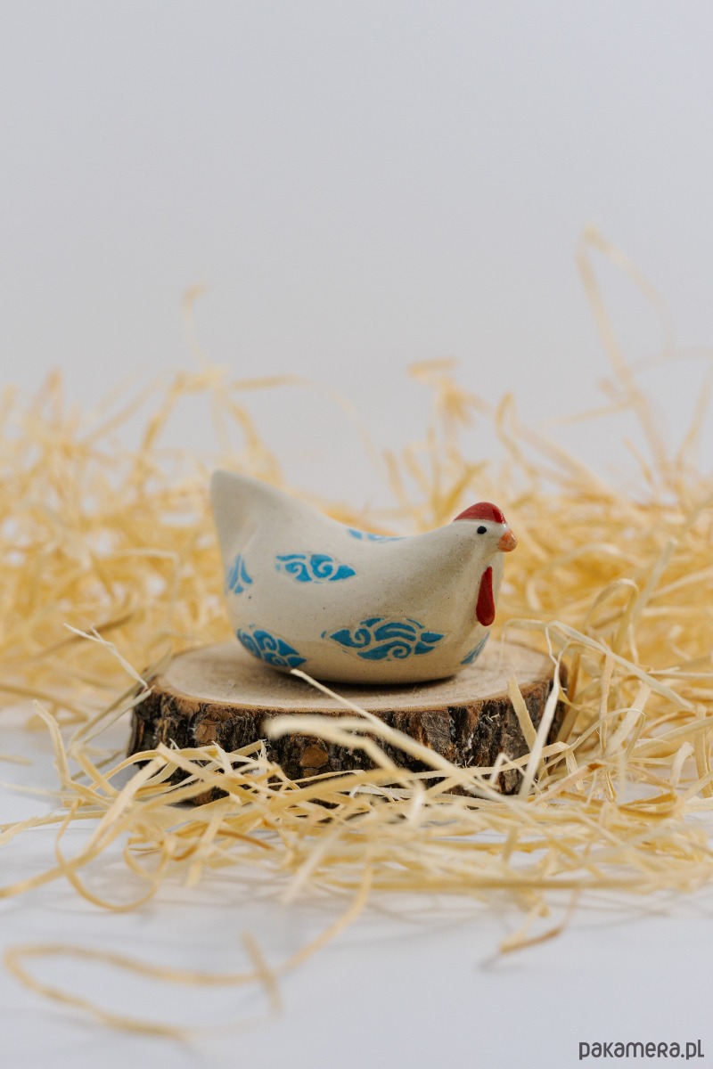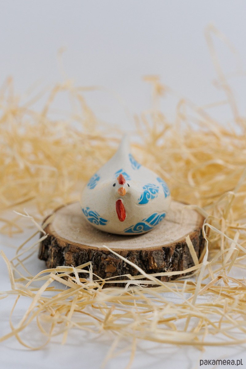 Każdy kurkowy egzemplarz ma inny motyw – kropki, kwiaty, cętki. Figurka wnosi ciepło i lekkość do wnętrza, stając się miłym wiosennym akcentem. Ozdobi też wielkanocny stół, koszyczek i kwiatowe aranżacje. Jej spokojna forma i delikatne zdobienia dobrze komponują się z naturalnymi materiałami i jasnymi wnętrzami.