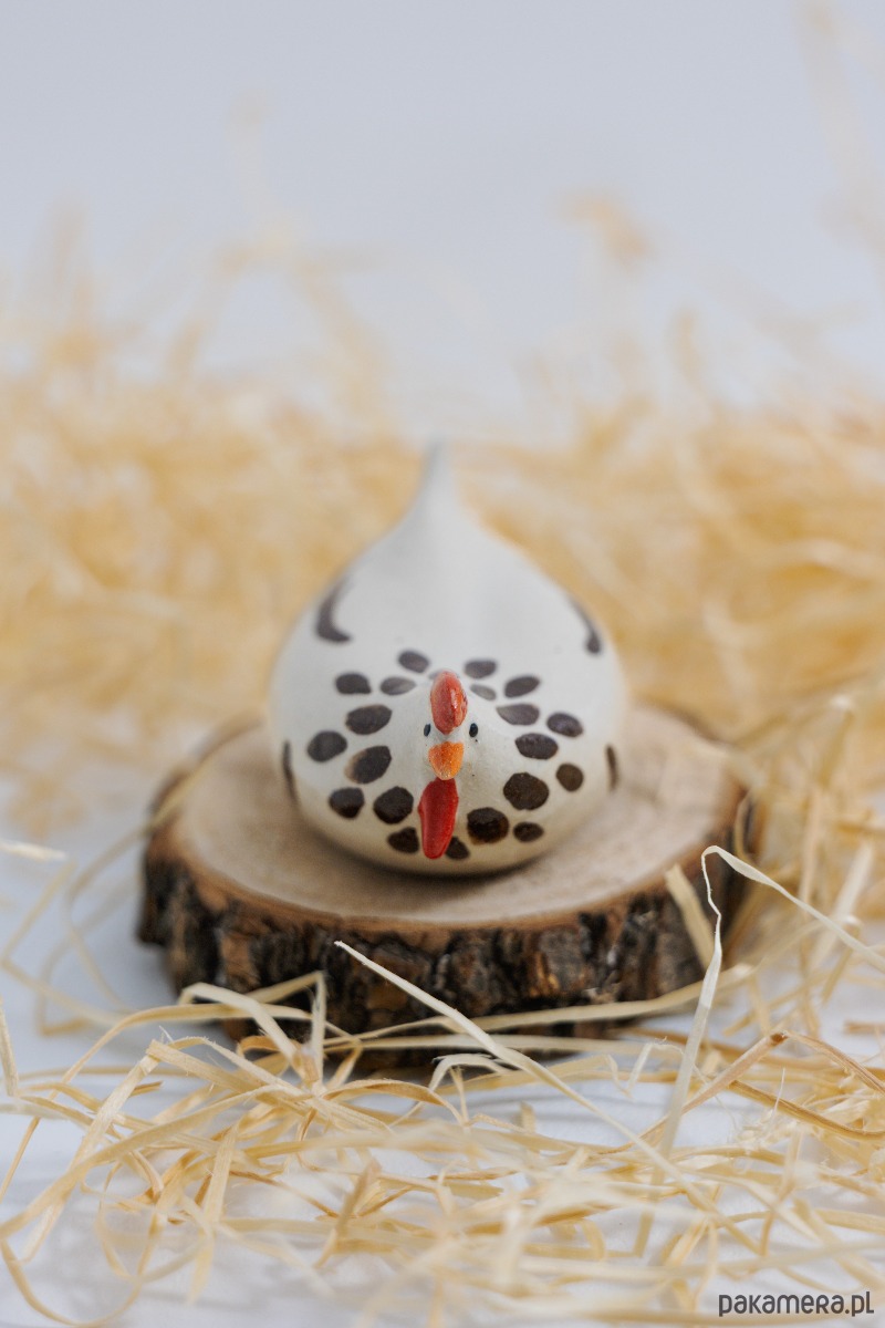 Każdy kurkowy egzemplarz ma inny motyw – kropki, kwiaty, cętki. Figurka wnosi ciepło i lekkość do wnętrza, stając się miłym wiosennym akcentem. Ozdobi też wielkanocny stół, koszyczek i kwiatowe aranżacje. Jej spokojna forma i delikatne zdobienia dobrze komponują się z naturalnymi materiałami i jasnymi wnętrzami.