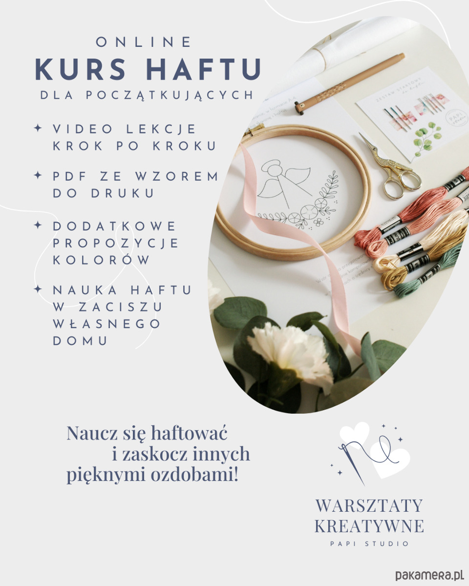 Kurs haftu w formie video – idealny dla osób początkujących, które chcą zacząć nową przygodę z haftem ręcznym.