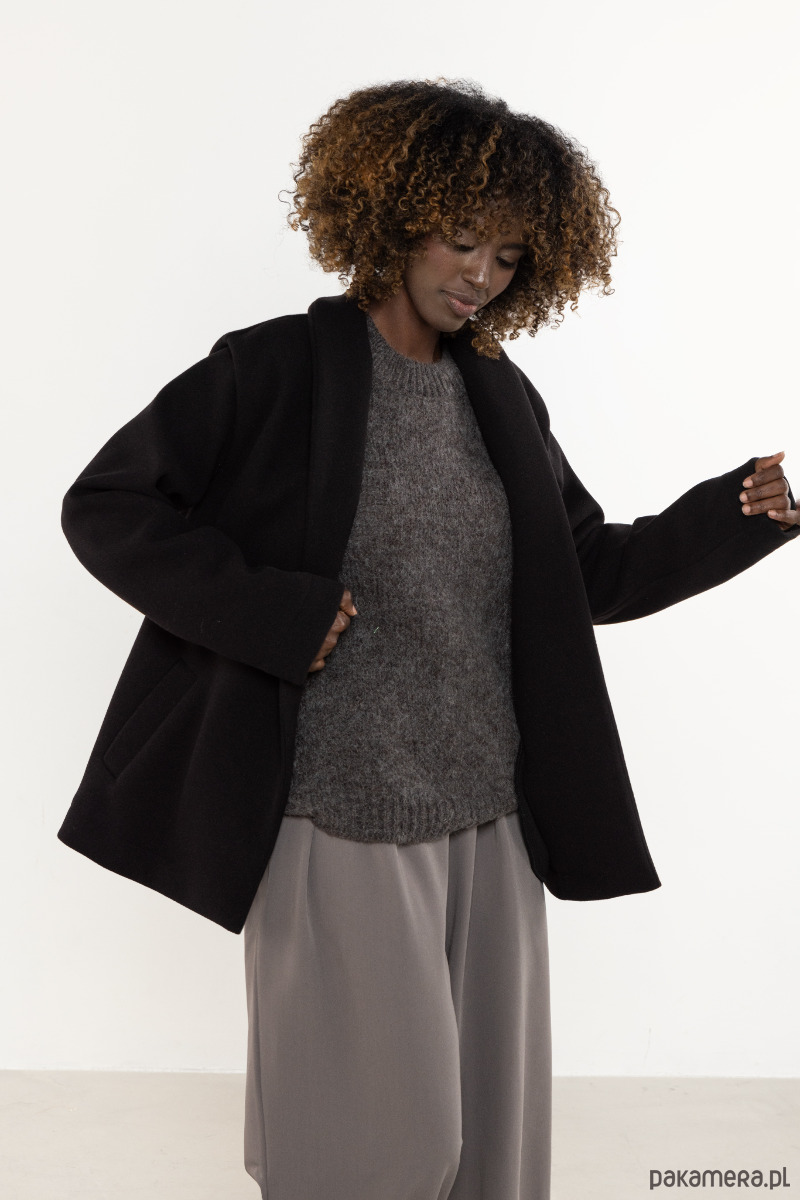 Elegancka kurtka damska o krótkim kroju wykonana z miękkiego flauszu łączy komfort noszenia z trwałością. Luźny fason z kołnierzem szalowym nadaje nowoczesny charakter, a jednorzędowe zapięcie na guzik i praktyczne kieszenie po bokach zwiększają funkcjonalność. Model świetnie sprawdzi się w codziennych stylizacjach, pasując zarówno do jeansów, jak i eleganckich spodni czy sukienek. To uniwersalna propozycja na jesień i zimę, podkreślająca styl i wygodę użytkowania.