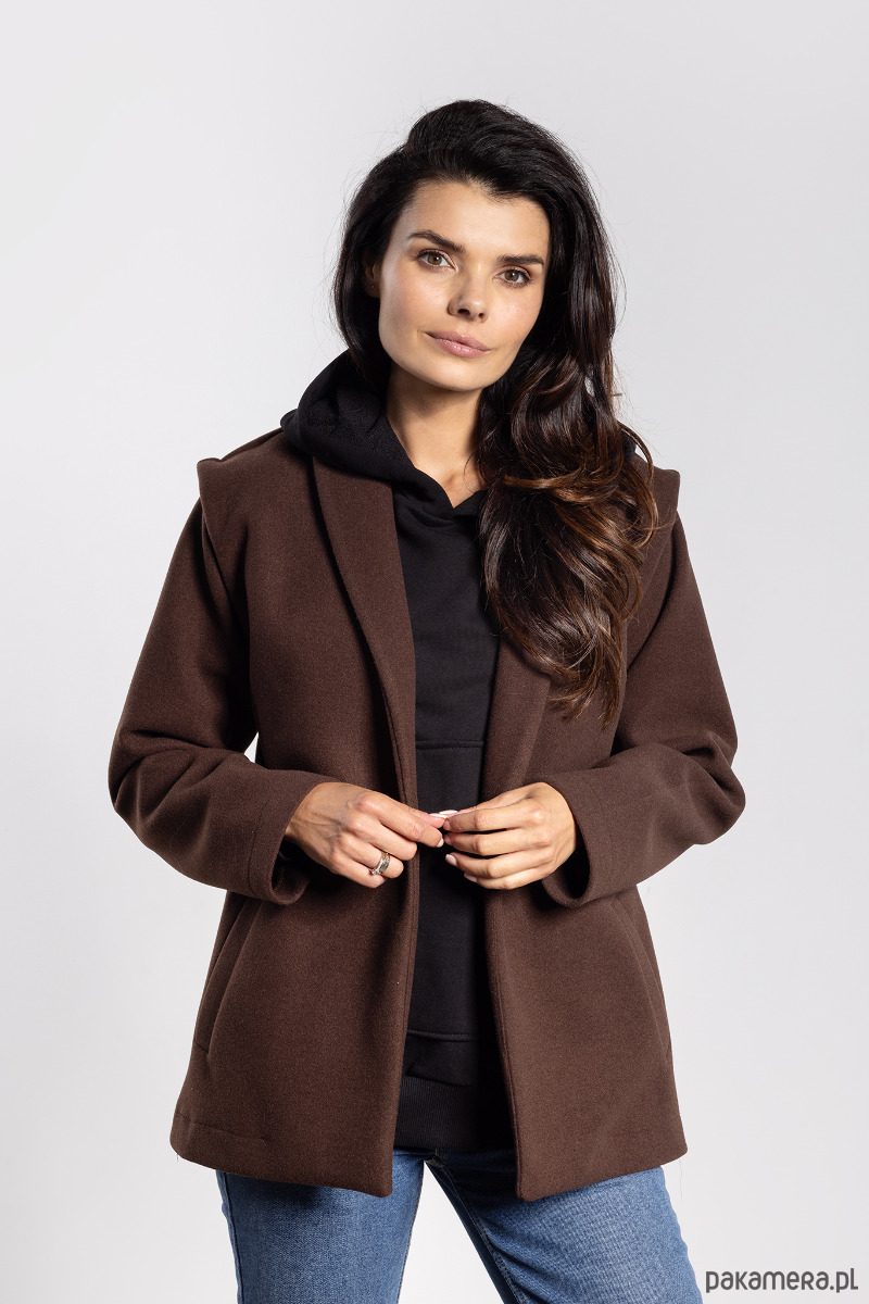 Elegancka kurtka damska o krótkim kroju wykonana z miękkiego flauszu łączy komfort noszenia z trwałością. Luźny fason z kołnierzem szalowym nadaje nowoczesny charakter, a jednorzędowe zapięcie na guzik i praktyczne kieszenie po bokach zwiększają funkcjonalność. Model świetnie sprawdzi się w codziennych stylizacjach, pasując zarówno do jeansów, jak i eleganckich spodni czy sukienek. To uniwersalna propozycja na jesień i zimę, podkreślająca styl i wygodę użytkowania.