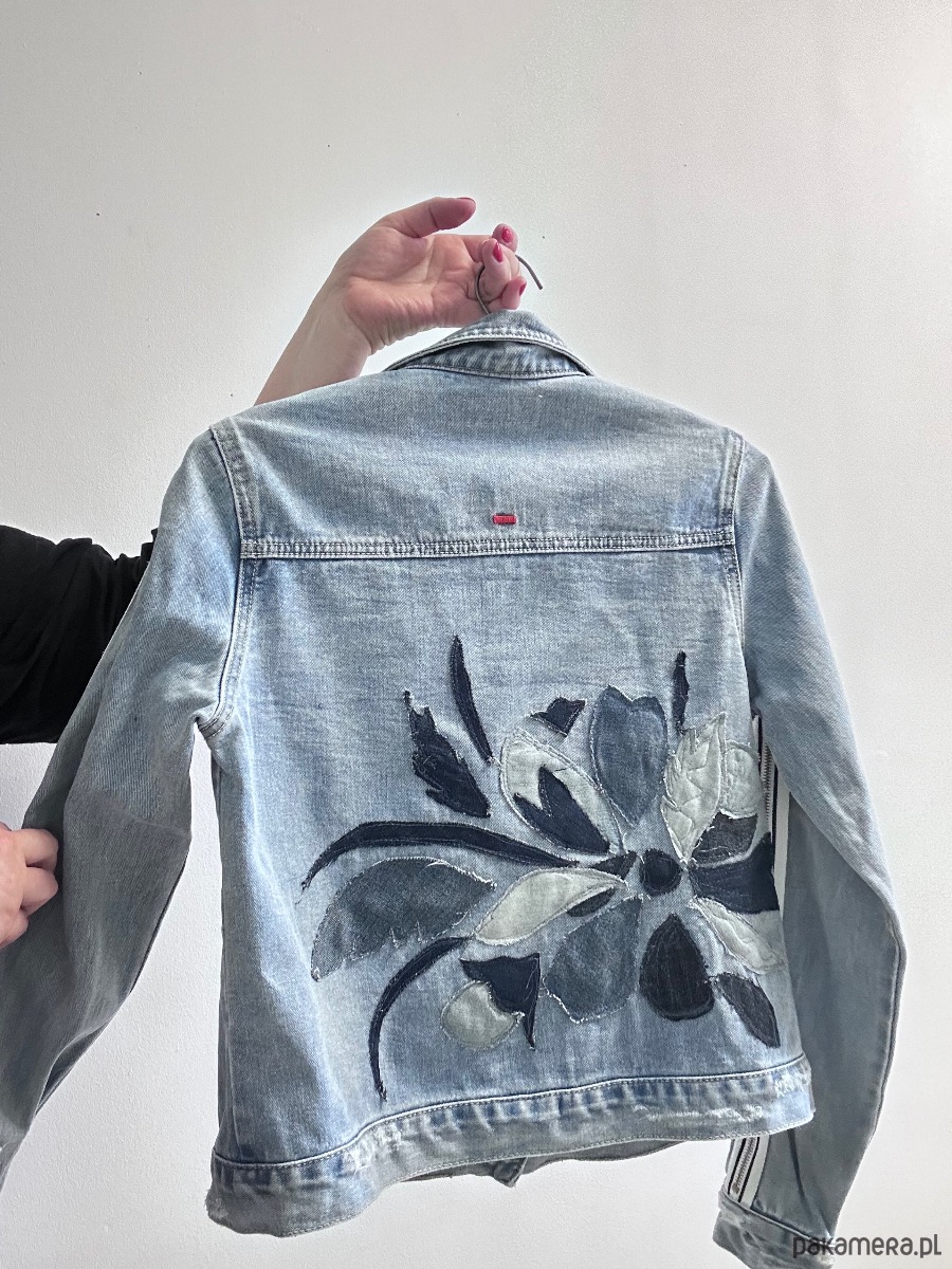 Kurtka z jeansu z patchworkową aplikacją Flower
