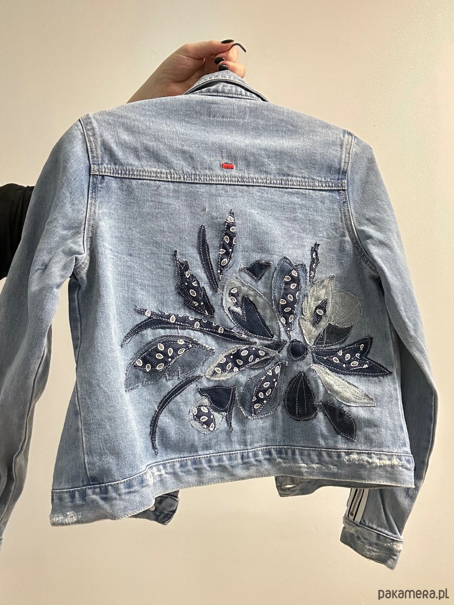 Kurtka jeansowa z patchworkową aplikacją