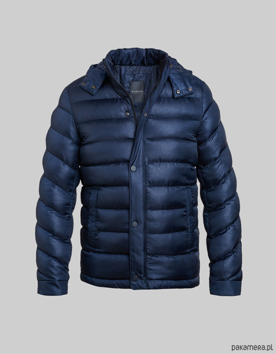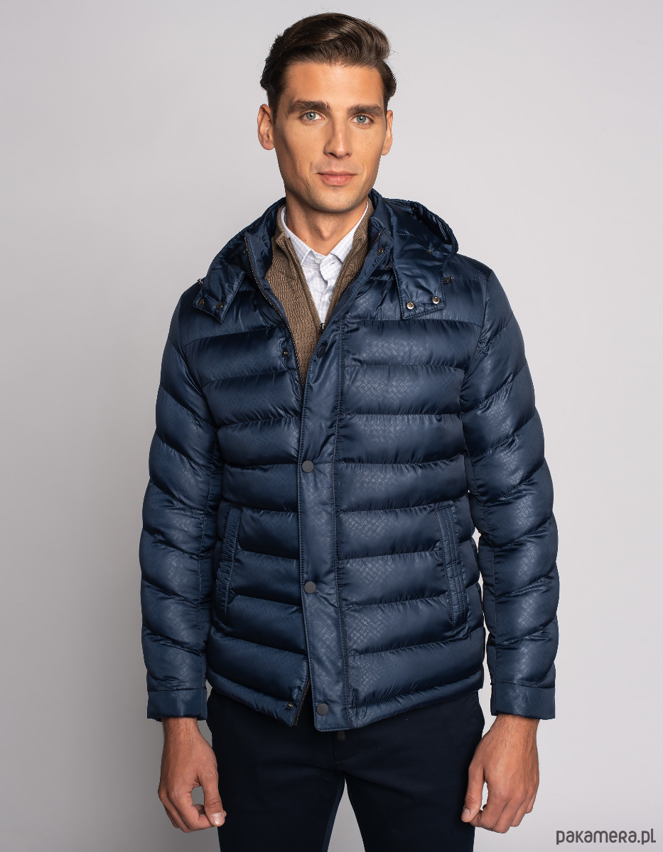 Kurtka męska imperia granatowy kurtka imperia granatowy 46Ciepła kurtka wykonana z wysokiej jakości tkaniny w granatowym kolorze z subtelnym deseniem oraz podszewką z oryginalnym wzorem. Posiada dwie ocieplane kieszenie zewnętrzne, odpinany i regulowany kaptur oraz dodatki od renomowanego producenta YKK. Idealna dla osób ceniących casualowy styl.