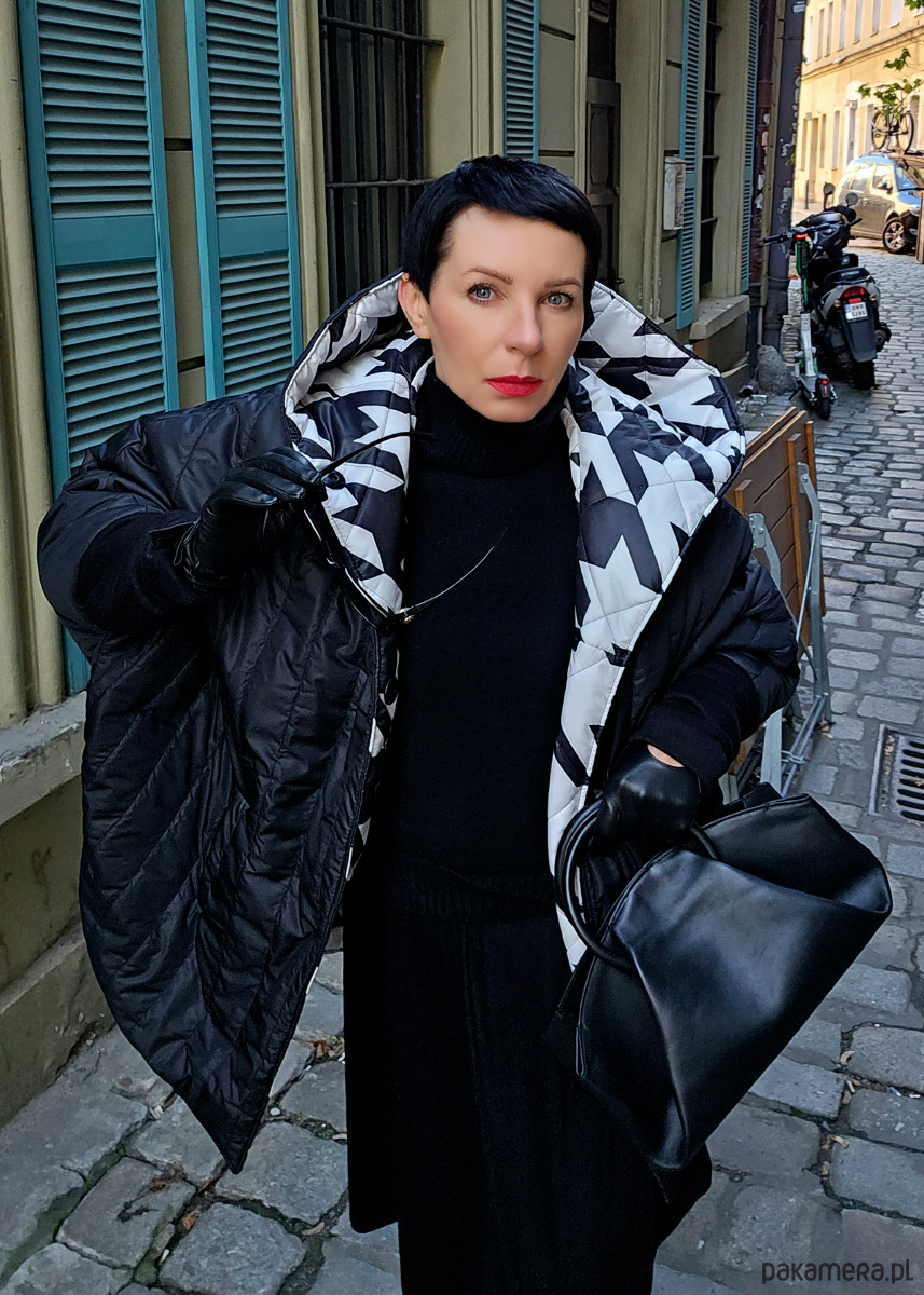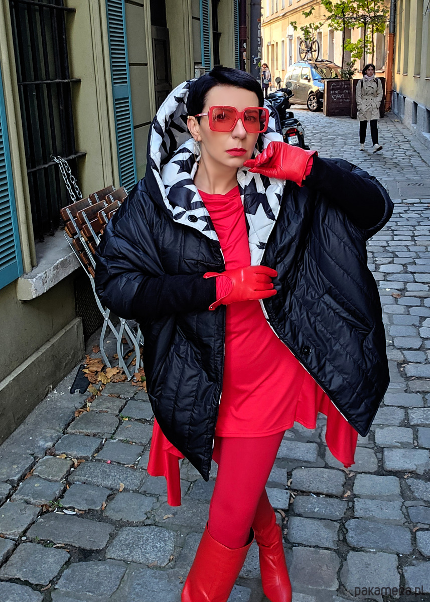 fason kurtki pozwala na noszenie pod spodem obszernych oversize,
