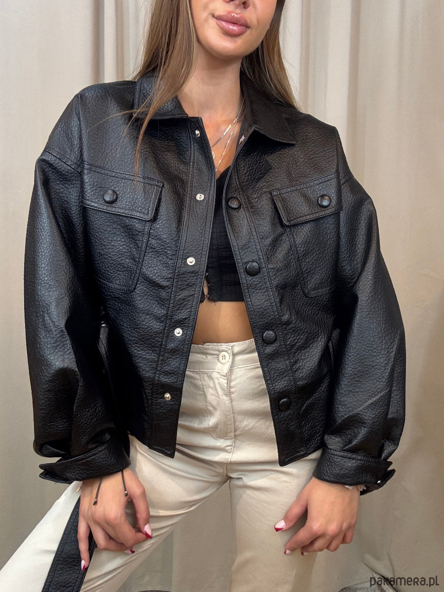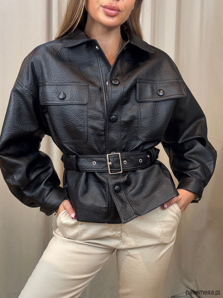 Kurtka z ekoskóry z paskiem.