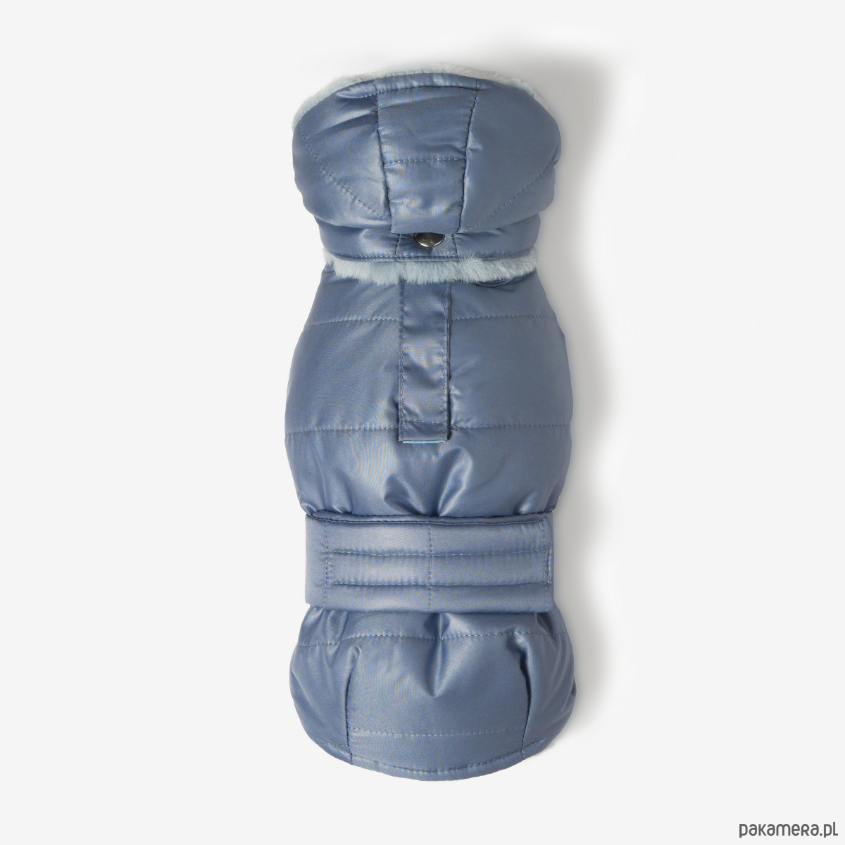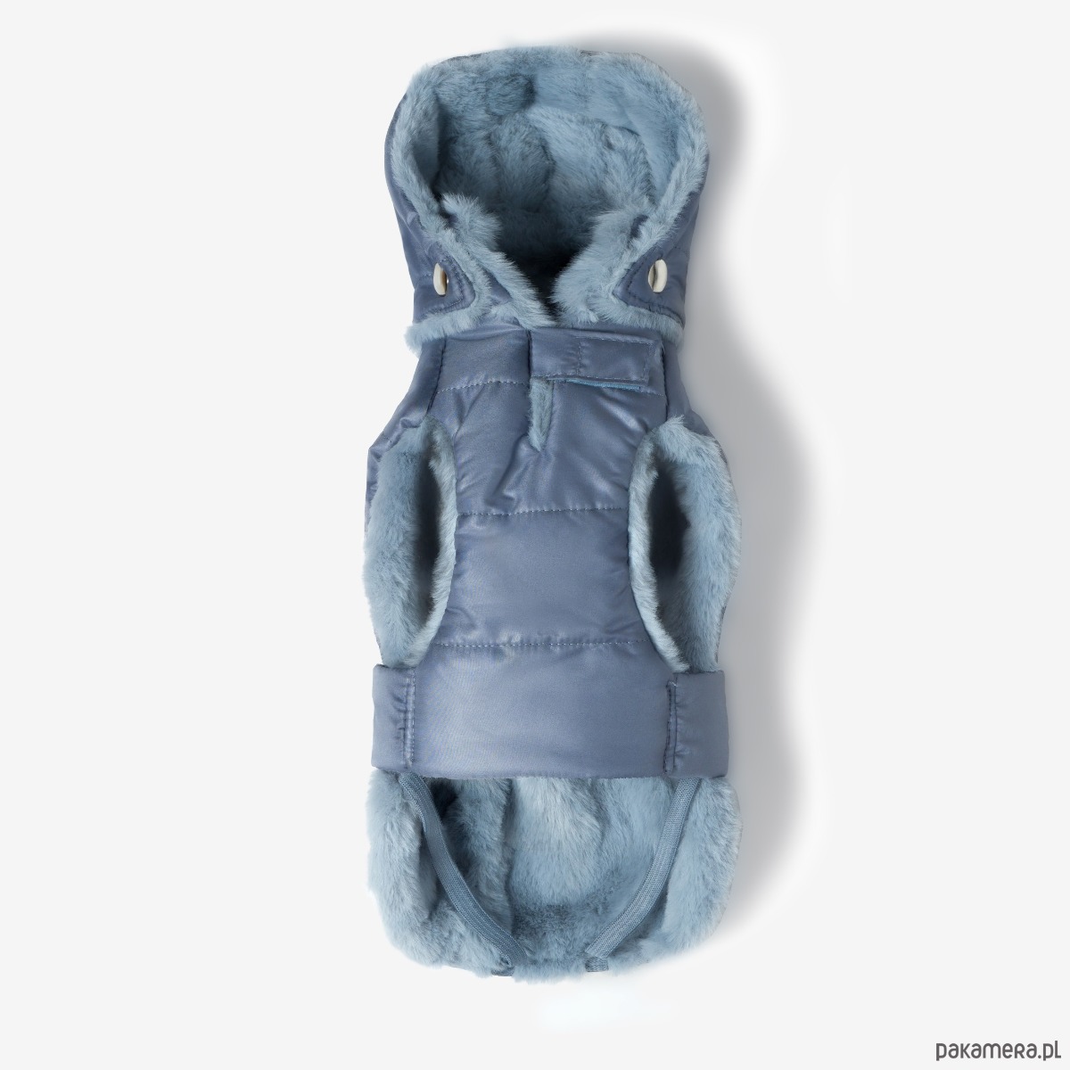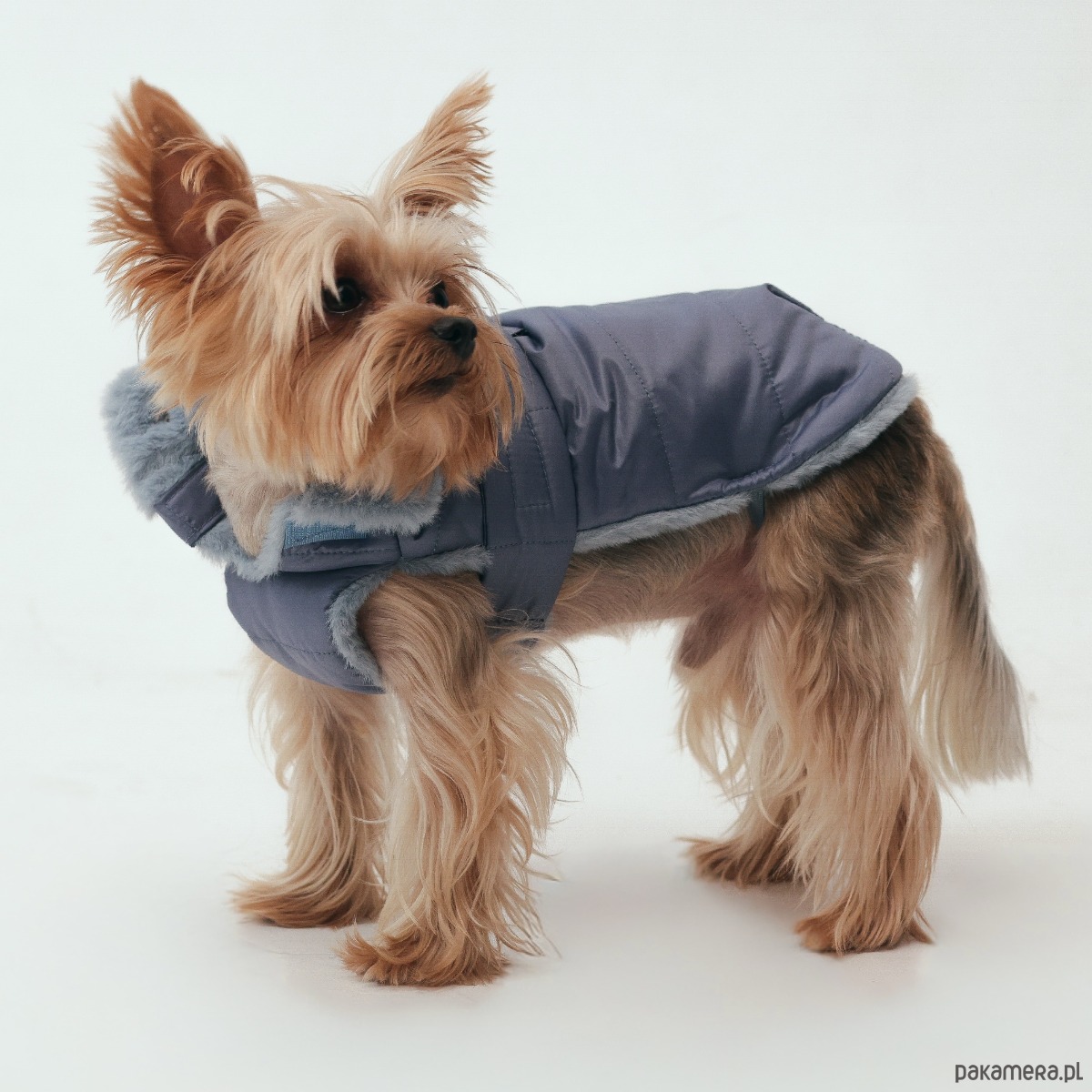 Odpinany kaptur pozwala dopasować model do pogody, a krój skutecznie osłania brzuszek i klatkę piersiową. Na karku znajduje się dyskretne otwarcie, które umożliwia przypięcie smyczy do szelek lub obroży.