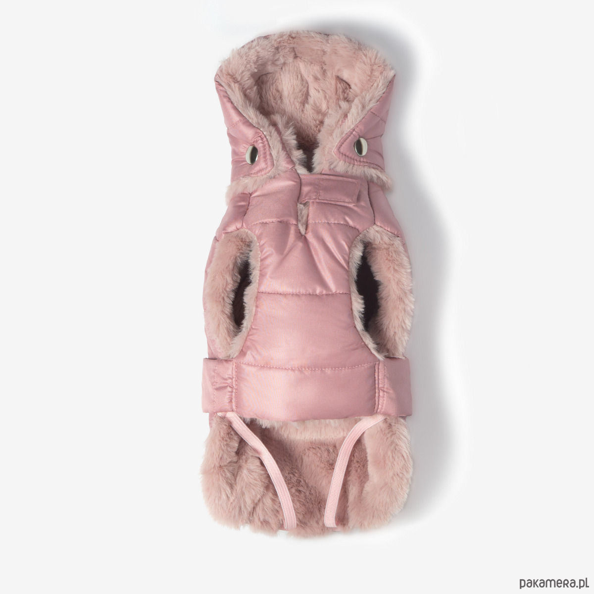 Odpinany kaptur pozwala dopasować model do pogody, a starannie opracowany krój osłania brzuszek i klatkę piersiową. Na karku znajduje się dyskretne otwarcie, które pozwala przypiąć smycz do szelek lub obroży.