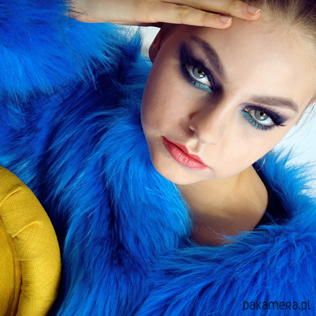 Podszewka w kolorze kobaltowym, kieszonki ukryte w szwie. Zapięcie na haczyk na wysokości mostka. Klapy "na zakładkę".