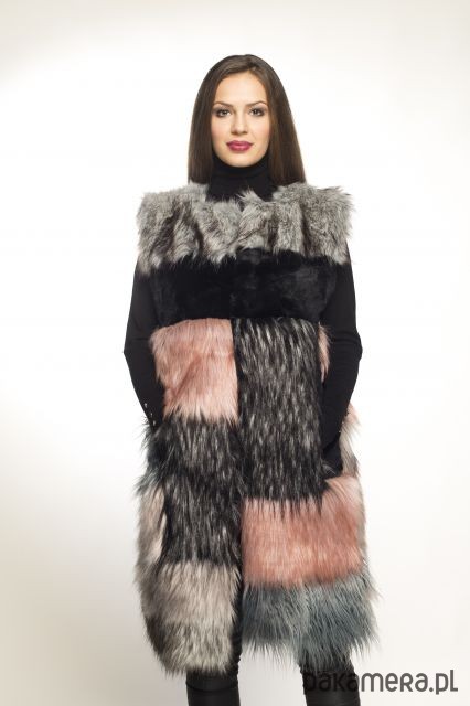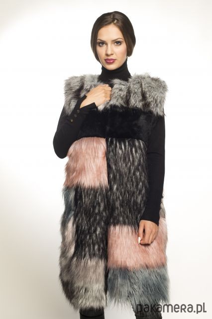 Kolorowa kamizelka patchwork wykonana jest z najwyższej jakości futra ekologicznego.