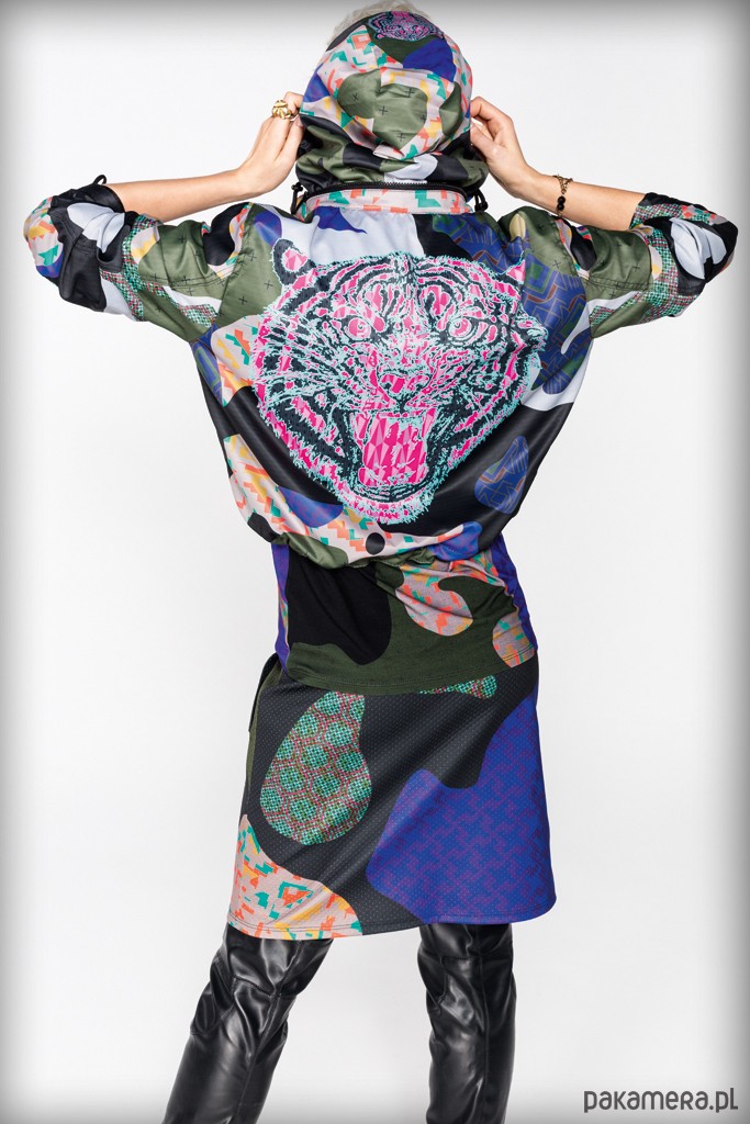 ORTALIONOWY PŁASZCZ PRZECIWDESZCZOWY. BARDZO SZYBKO MOŻNA ZMIENIĆ GO W KURTKĘ,WYSTARCZY ODPIĄĆ DOLNĄ CZĘŚĆ. PODSZEWKA JEST LEKKO OCIEPLANA. PŁASZCZ POSIADA OBSZERNY KAPTUR,KTÓRY MOŻNA SCHOWAĆ W KARCZKU,PAKOWANY JEST W TORBĘ-NERKĘ,RÓWNIEŻ WODOODPORNĄ..PŁASZCZ W CAŁOŚCI POKRYTY JEST NASZYMI AUTORSKIMI WZORAMI.