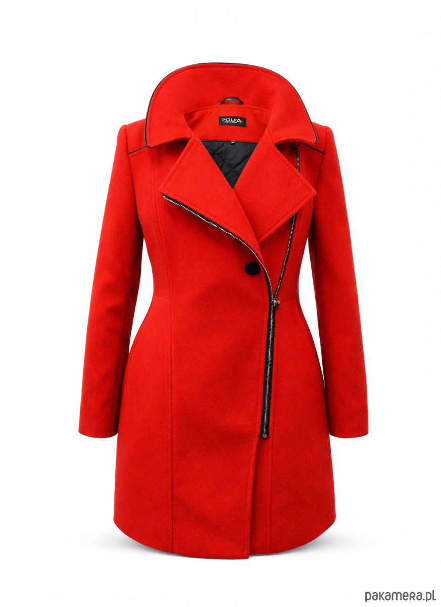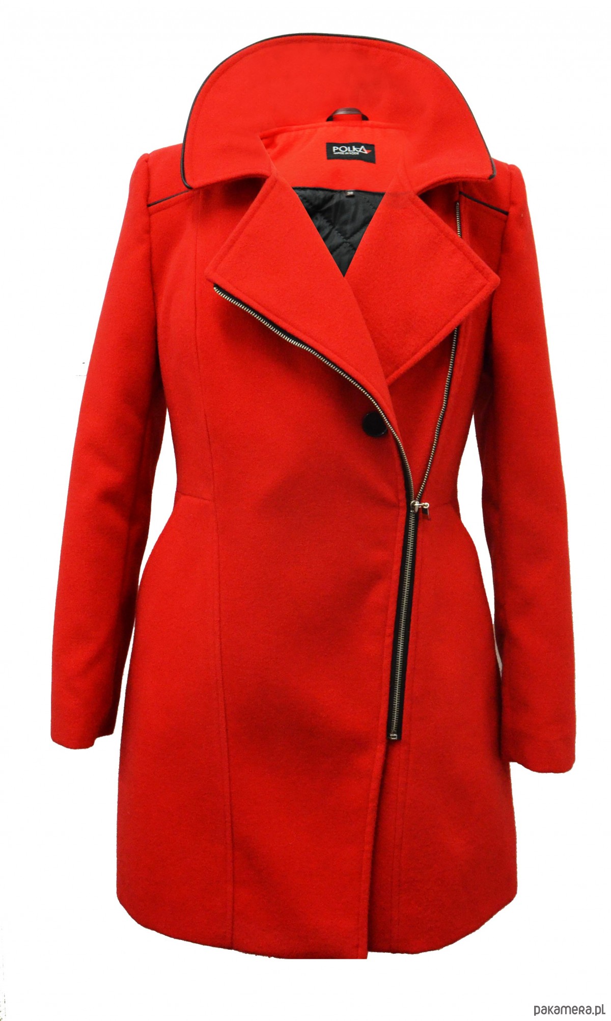 Płaszcz produkcji polskiej zimowy - ocieplany BARDZO MODNY FASON HIT SEZONU Modny asymetryczny płaszczyk zimowy.Uszyty z flauszu i pikowanej ocieplanej podszewki. Płaszczyk ozdobiony kontrastowymi czarnymi guzikami oraz metalowym zamkiem na czarnej taśmie.Kołnierzyk i karczek wykończony ozdobną skórzaną taśmą wypustkową. Wieszaczek wykonany ze skórzanej taśmy. Płaszczyk zapinany asymetrycznie na metalowy zamek. Zaprojektowany przez polską projektantkę Paulinę Śliwińską. Uszyty w Łodzi z polskich materiałów. Płaszczyk posiada rozporek z tyłu oraz skośne kieszenie po bokach. Możliwość zapięcia płaszcza na różne sposoby: eksponując duży kołnierz lub podpinając pod samą szyje. Bardzo ładny, modny fason, ślicznie się układa. Idealny na każdą okazję. GORĄCO POLECAM Płaszczyki dostępne w rozmiarze 44.