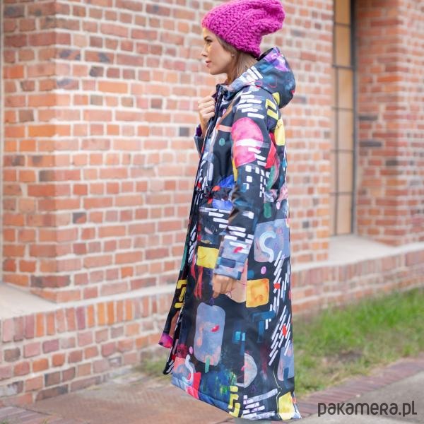Długi płaszcz damski został wykonany z wodoodpornej tkaniny, która uchroni Cię przed deszczem oraz przed podmuchami wiatru.