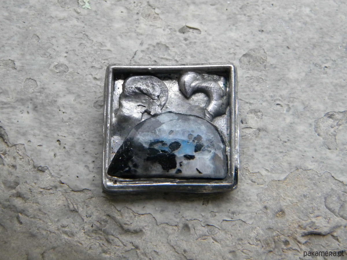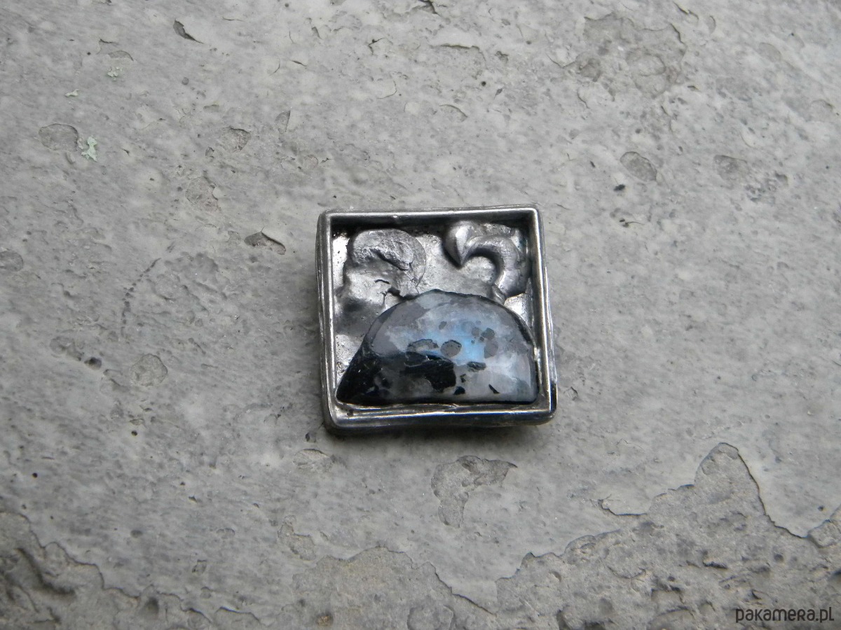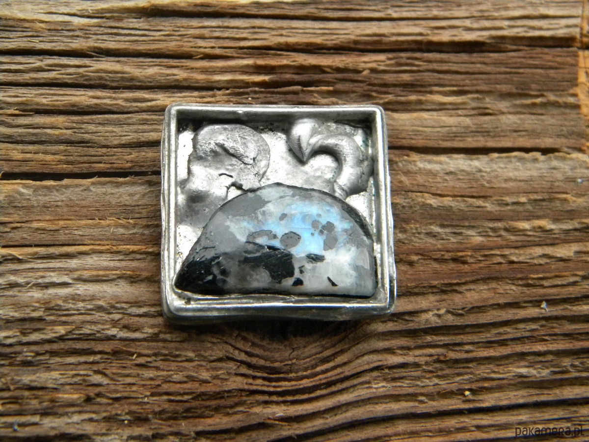 Kwadrat z kamieniem księżycowym - broszka