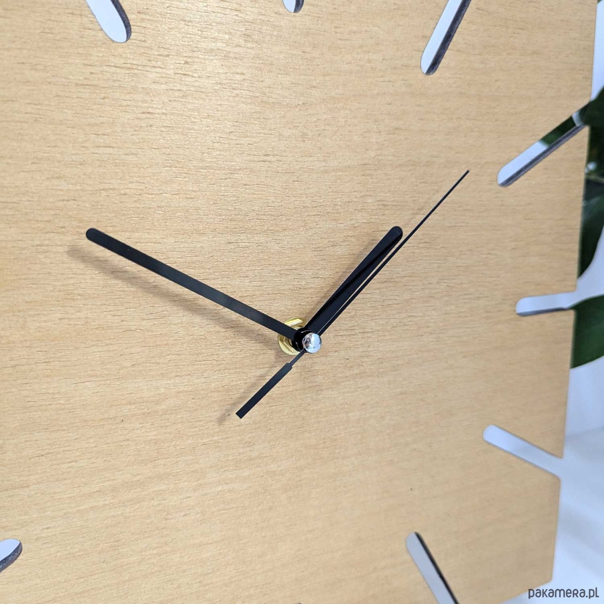 Wykonany z wysokiej jakości sklejki brzozowej i osadzony na solidnej, drewnianej podstawce, ten zegar łączy w sobie funkcjonalność z ponadczasowym designem. Geometryczny, kwadratowy kształt i minimalistyczna forma sprawiają, że idealnie pasuje do wnętrz skandynawskich, rustykalnych oraz nowoczesnych.